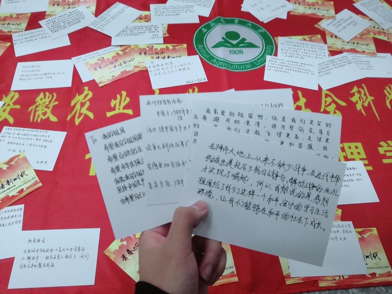 学院开展“青春心向党,建功新时代”系列团日活动 日期:2019年05月20日 00:00 作者: 点击: 本网讯 为深入学习贯彻习近平总书记在纪念五四运动100周年大会和中共中央政治局第十四次集体学习时的重要讲话精神,加强团干部、团员队伍建设,引导激励团员青年坚定中国特色社会主义理想信念,继承和发扬百年“五四”精神。学院多渠道、宽途径组织开展了“青春心向党,建功新时代”系列主题团日活动。 重温历史,缅怀先驱。4月19日下午,17级汉语言文学团支部全体成员集中观看了“七分钟中国近现代史混剪”和“手绘团史”,重温了近代以来中国的峥嵘历史,以此激励和引领青年团员传承“五四”精神,弘扬爱国奋斗精神,积极投身中国特色社会主义事业的伟大实践。20日上午,该团支部成员又来到大蜀山烈士陵园,以缅怀先烈的方式度过了一个充实而有意义的“五四”青年节。烈士碑前,青年们在团旗下庄严宣誓。 “众创众筹众评”模式,传递五四星火。 4月25日,18应用心理学团支部围绕“青春心向党,建功新时代”主题,用青年朋友们听得懂、记得住、用得上的方式,充分发挥青年团员的积极性、主动性和创造性,开展了“分享家乡红色故事”、“我对祖国有话说——明信片征集”、“‘青年之声面对面’学习座谈会”等系列特色主题团日活动,激励青年团员传承“五四”精神,弘扬爱国奋斗精神,积极投身中国特色社会主义事业的伟大实践,青春建功新时代。 组织先进学生代表集中观看学习总书记在纪念五四运功100周年大会的重要讲话精神。4月30日上午10时许,人文社科学院组织学生党员、入党积极分子、主要学生干部及团员青年等80余名人,在人文楼202教室(学院远程教育场所)直播观看学习习近平总书记在纪念五四运功100周年大会的重要讲话视频内容。直播结束后,现场同学们纷纷用纸笔记录了对总书记重要讲话精神的学习感悟。 围绕百年五四精神,开展“青年之声·我与书记院长面对面”活动。 5月8日晚,人文社科学院在人文楼602学术报告厅成功举办“我与书记院长面对面暨纪念五四运动100周年特殊主题团日”活动。学院党委书记孙超、院长方章东、学院党委副书记吕大鹏出席活动,与学院主要学生干部、17、18级各专业学生代表共聚一堂,面对面交流,解决同学们的疑惑。 开展“唱响青春奋斗之歌,献礼建国七十周年”校园文化活动。 5月9日下午,以“唱响青春奋斗之歌,献礼建国七十周年”为主题的第十八届“人文之月”校园文化活动开幕仪式在我校西区文化广场顺利举行。校党委副书记裴树东、校党委宣传部常务副部长朱绍友、校学工部(处)处长彭庆刚、校招生就业处处长刘海涛、校团委副书记任琪、学院党政领导及两百余名师生参与了开幕活动。 开幕式上,人文学子胸前佩戴团徽,齐声诵读《五四之火,永不熄灭》,回味五四精神,致敬五四先辈;深情诵读《中华少年》,献礼建国七十周年;《法制建设的历史回顾》演讲,讲述了新中国成立以来法制建设发展和完善的历程,深深震撼了在场的每一听众;社会工作专业学子手持鲜艳国旗,共唱相亲相爱一家人,高声呐喊“志愿服务,闪耀青春”专业口号。 上一条:中共中央办公厅印发《中国共产党组织处理规定(试行)》 下一条:学院举办“青年之声·我与书记院长面对面”暨纪念五四运动100周年主题活动