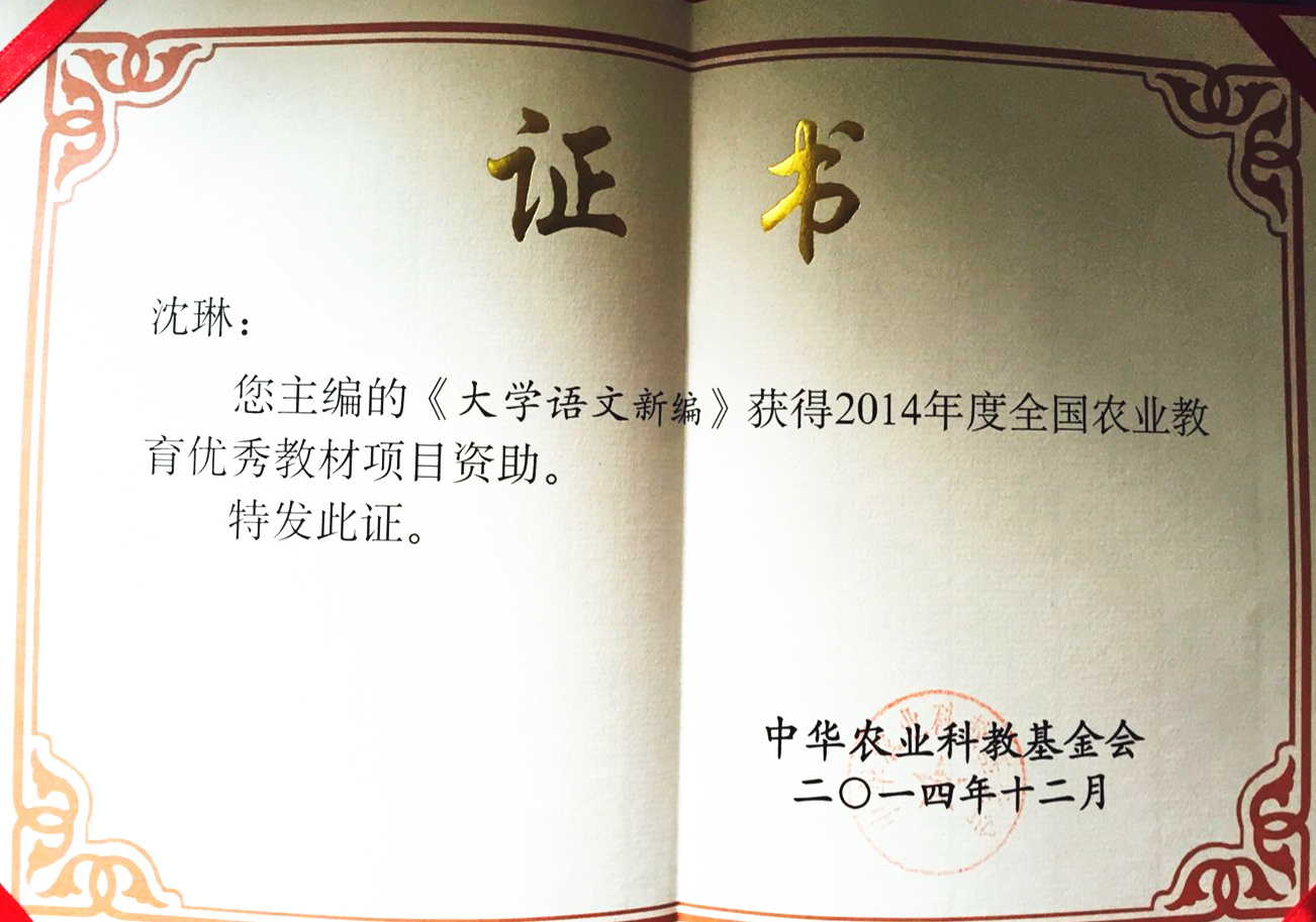 2015年完成十二五省部级规划教材《人文社科概论》的编写与出版,并在全校理工科类学生中使用。(图片)汉语言文学专业教师合编的“全国农业院校十二五规划教材”《大学语文新编》获2014年中华农科教基金教材奖。