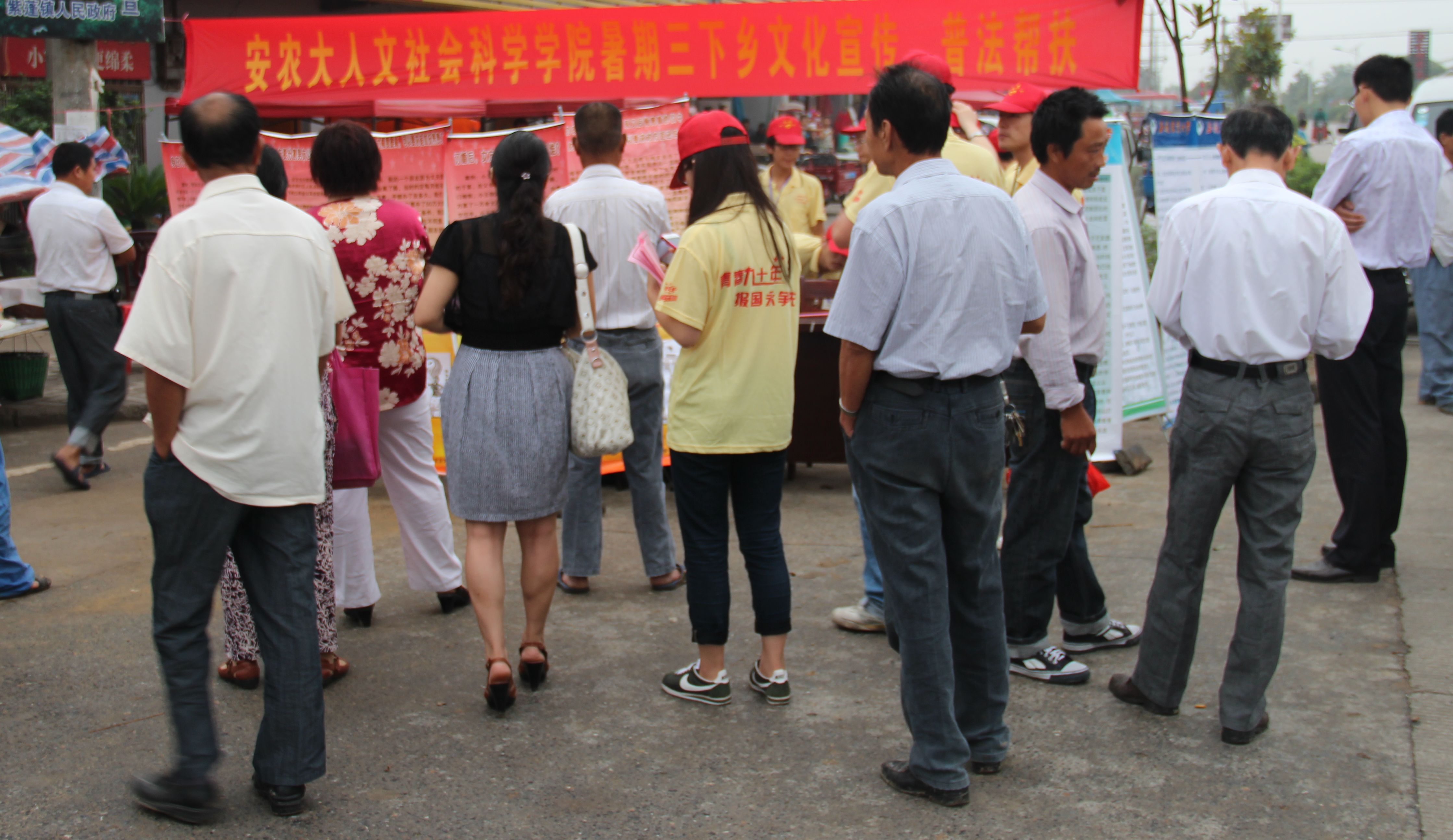 青春唱响庐西南,心手相牵安农爱 日期:2012年06月29日 00:00 作者: 点击: 本网讯 6月26日,人文社会科学学院赴肥西紫蓬镇“三下乡”实践团队到达肥西县紫蓬镇,开展为期两日的社会实践活动。先后开展了农户调研、模拟法庭、文化宣传、留守儿童安全教育、愿望墙、爱心捐赠等活动。 马传喜副校长慰问三下乡师生、座谈 当天上午,简易安顿后,人文志工走村串户,开展村民走访调查。志工们通过走访农民家庭,与他们进行沟通,调查当地农民的生活现状、留守儿童的成长环境、居民的经济消费结构以及乡土风情。 走访调查农户 下午,我校马传喜副校长在教务处、校团委、人文社科学院、思政部等负责同志的陪同下,和中学师生观看了模拟法庭表演。模拟法庭以生动的形式使同学们了解庭审过程,对青少年进行普法教育,让青少年更好的知法、懂法、守法。志工们精彩的表演博得了在场观众的阵阵掌声。 观看模拟法庭表演 27日清晨,志工们早早起床来到烧脉街道布置展台,为村民们提供法律援助和心理咨询。志工向村民们发放法律知识宣传单200余份,宣传和普及土地法、婚姻法、权益救济等相关法律知识。为当地居民提供相应的法律普及和一定的安全教育。青年志工也借此机会学习、巩固所学知识,大家在帮助他人的同时也充实了自己。活动结束后,志工团赶赴当地文化站开展留守儿童安全教育活动。针对留守儿童独自在家面对的防火、防盗、防灾等问题,志工团精心设计活动内容,以知识问答的形式开展安全知识的普及教育活动。活动现场,队员们用五彩的气球营造了轻松愉快的氛围,孩子们在欢声笑语中掌握了一定的防范自救知识。活动结束后,学院方章东副院长为孩子们捐赠了书包等学习用品。 文化宣传 爱心捐赠 27日下午,志工团来到罗坝村村委,精心布置“愿望墙”,倾听留守儿童内心的声音。“我想和爸爸妈妈一起快快乐乐的生活”、“我想爬紫蓬山,想和爸爸妈妈一起爬紫蓬山”、“我想考100分”。一张张小小的便利贴,承载的是孩子们对父母的思念,对长辈的祝福,对自己未来的憧憬。他们是祖国的未来,但在成长过程中却少了些关爱。需要我们携手共同努力,为留守儿童撑起一片充满彩虹的天空。 写下我的愿望 我的愿望是和爸爸妈妈快快乐乐的生活 上一条:马传喜副校长看望我院赴紫蓬镇“三下乡”志工团 下一条:2011级社工(专升本)举办“专业理念培养”实践活动