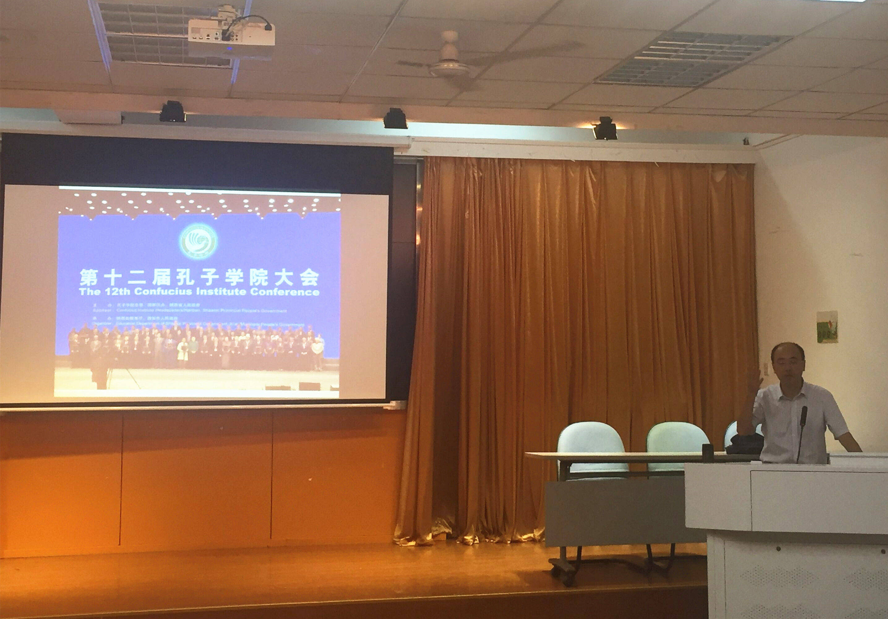 作为校庆90周年及第21届全国推广普通话宣传周系列活动之一,9月14日晚,安徽大学文学院副教授、原智利圣托马斯大学孔子学院中方院长沙宗元应邀于人文楼602室作了一场名为“孔子学院文化推广的模式与思考”的学术报告会。报告会由校语言工作委员会主办、人文社会科学学院承办,院长方章东主持报告会,学院部分教师和同学聆听了报告会。