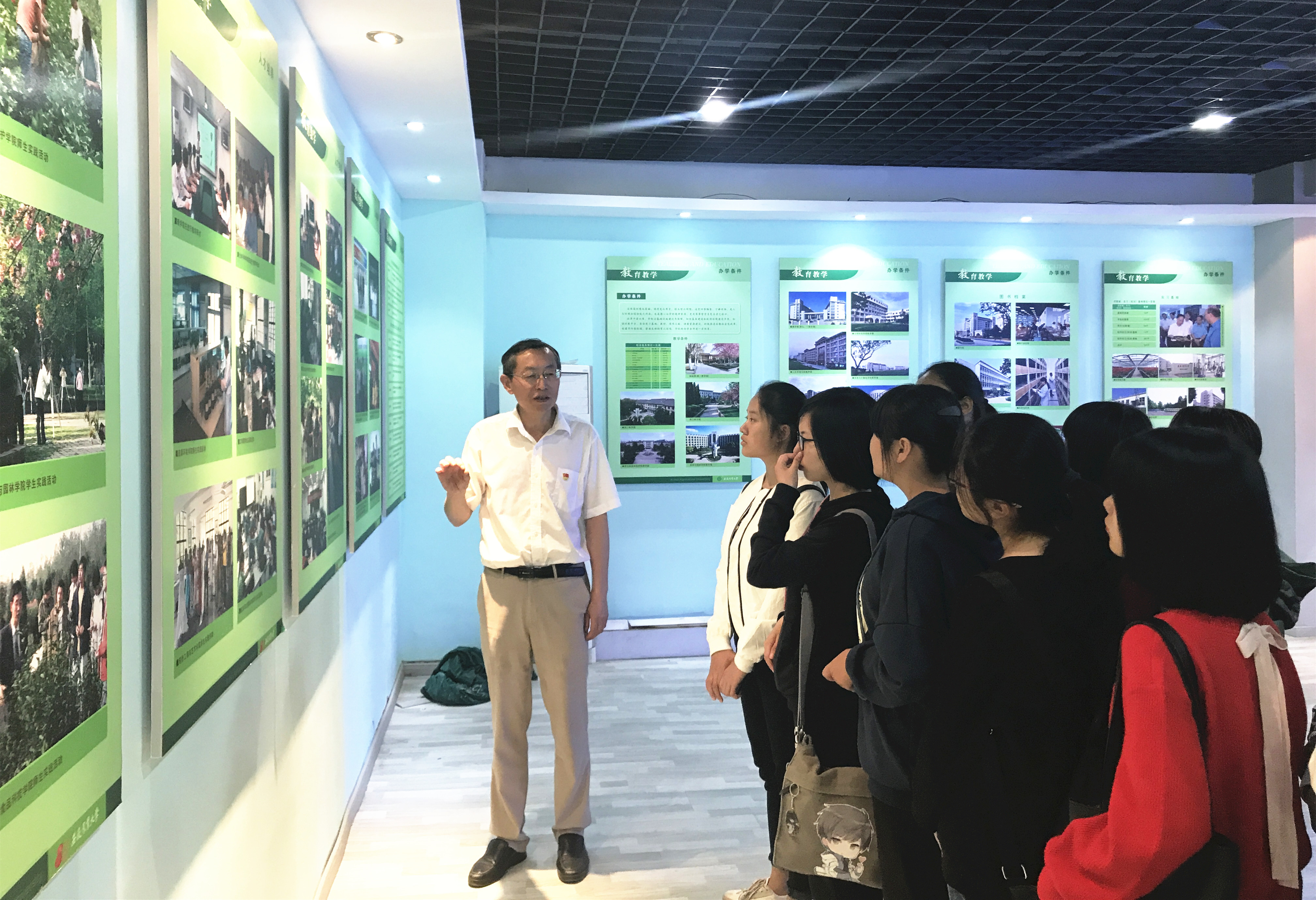 参观中,管志权、蒋传和分别结合展板内容和馆内陈列物品,从办学历程、发展成就、学科建设、人才培养、社会服务、校友风采等角度介绍我校自开创建校以来的点滴历程,勉励青年学子珍惜大学时光,积极树立奋斗目标,用“青春梦”托举“安农梦”。同学们认真聆听,从一个个展板、一件件历史实物中,深切地感受到学校厚重的历史积淀、沧桑的办学历程、丰硕的办学成果和奋发的进取精神,为学校取得的成就、为学校新的发展而骄傲。作为人文社科学院原党委书记,管志权、蒋传和还为青年学子介绍了学院发展历程,进一步增强了学生对学院的认同感、归属感。