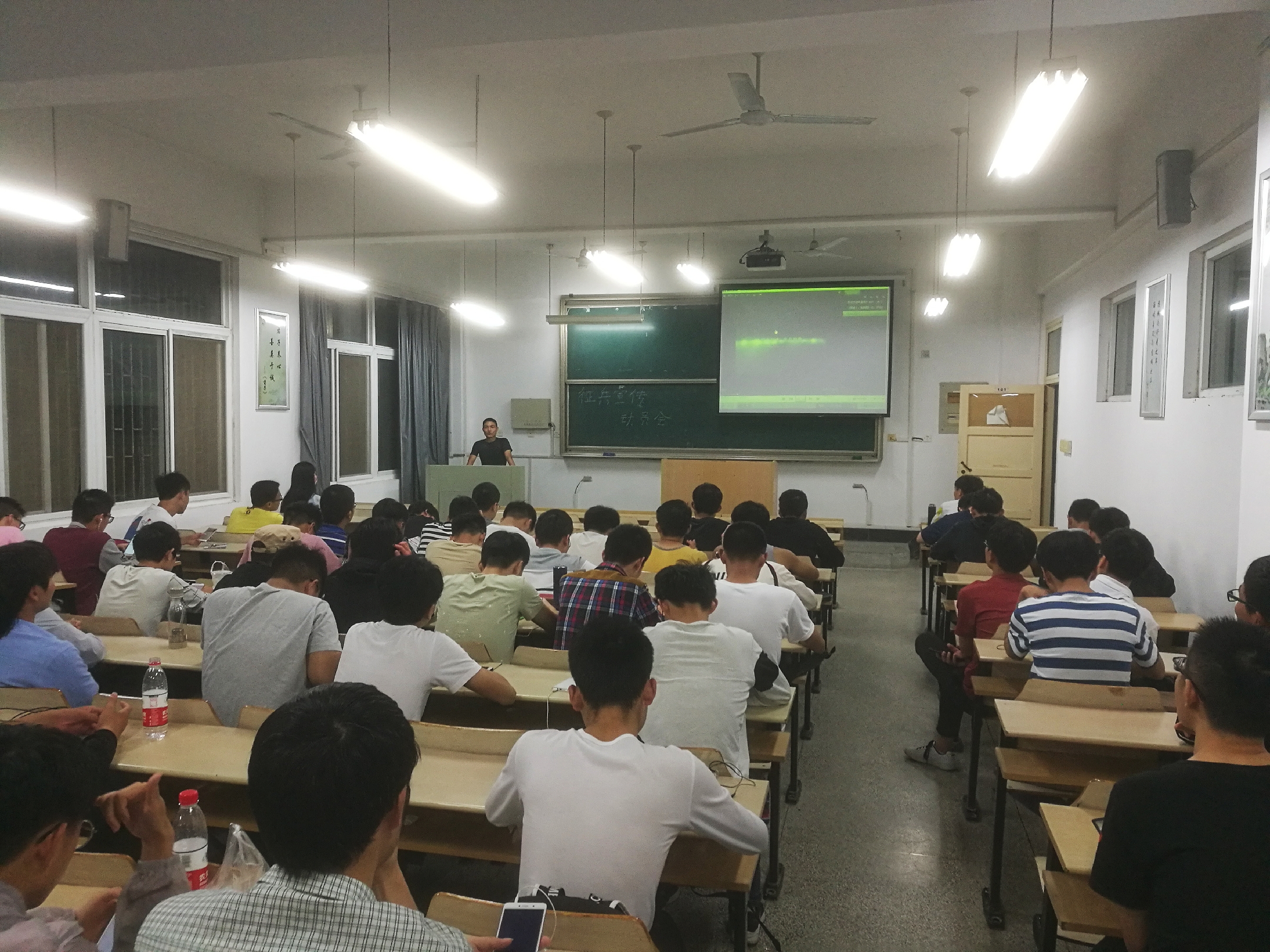 本网讯 5月10日晚,学院在人文楼101组织召开征兵宣传动员会,学院各年级男生参加。