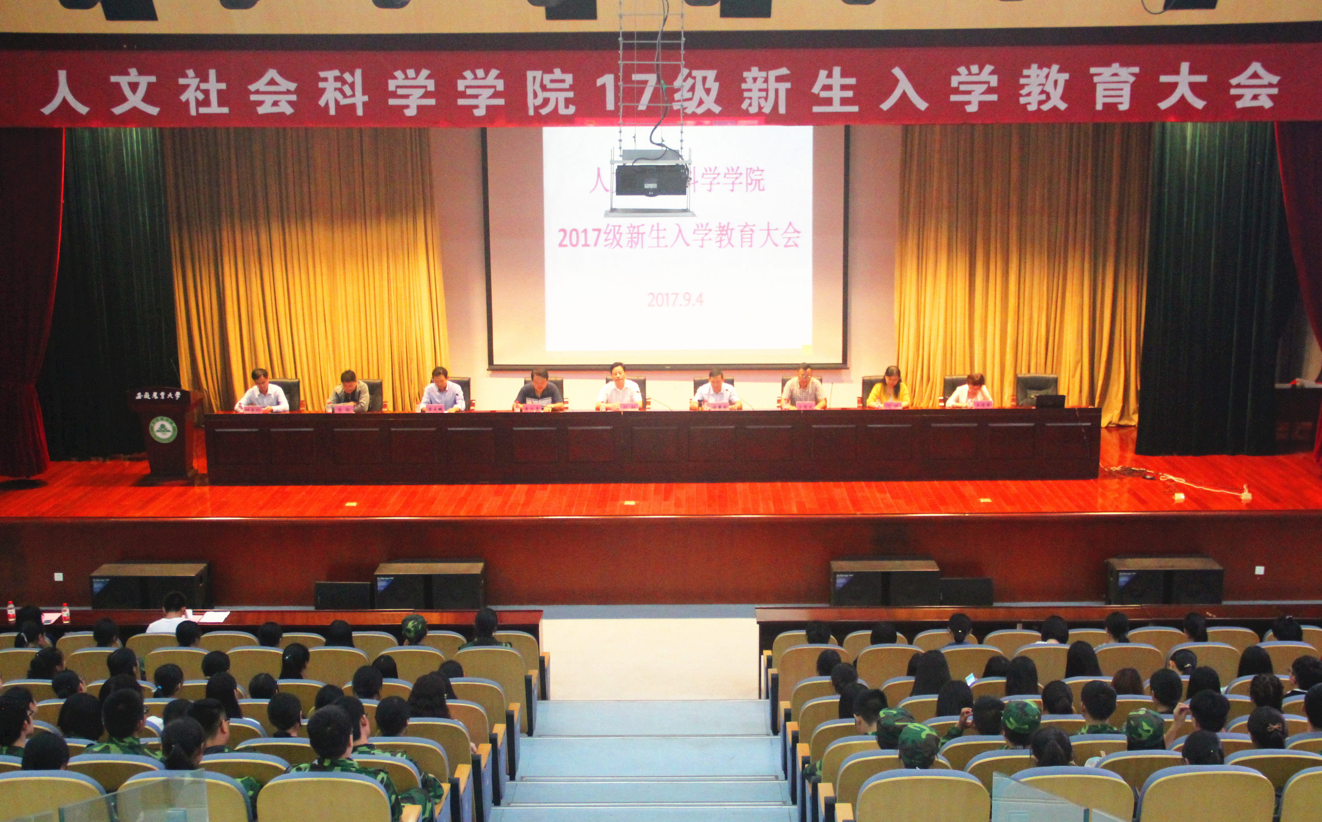 9月4日晚,/学院2017级新生入学教育大会在校图书馆一号报告厅隆重举行,学院党政领导、系部主任、新生辅导员及320名新生参加了会议。大会由学院党委副书记、副院长吕大鹏主持。