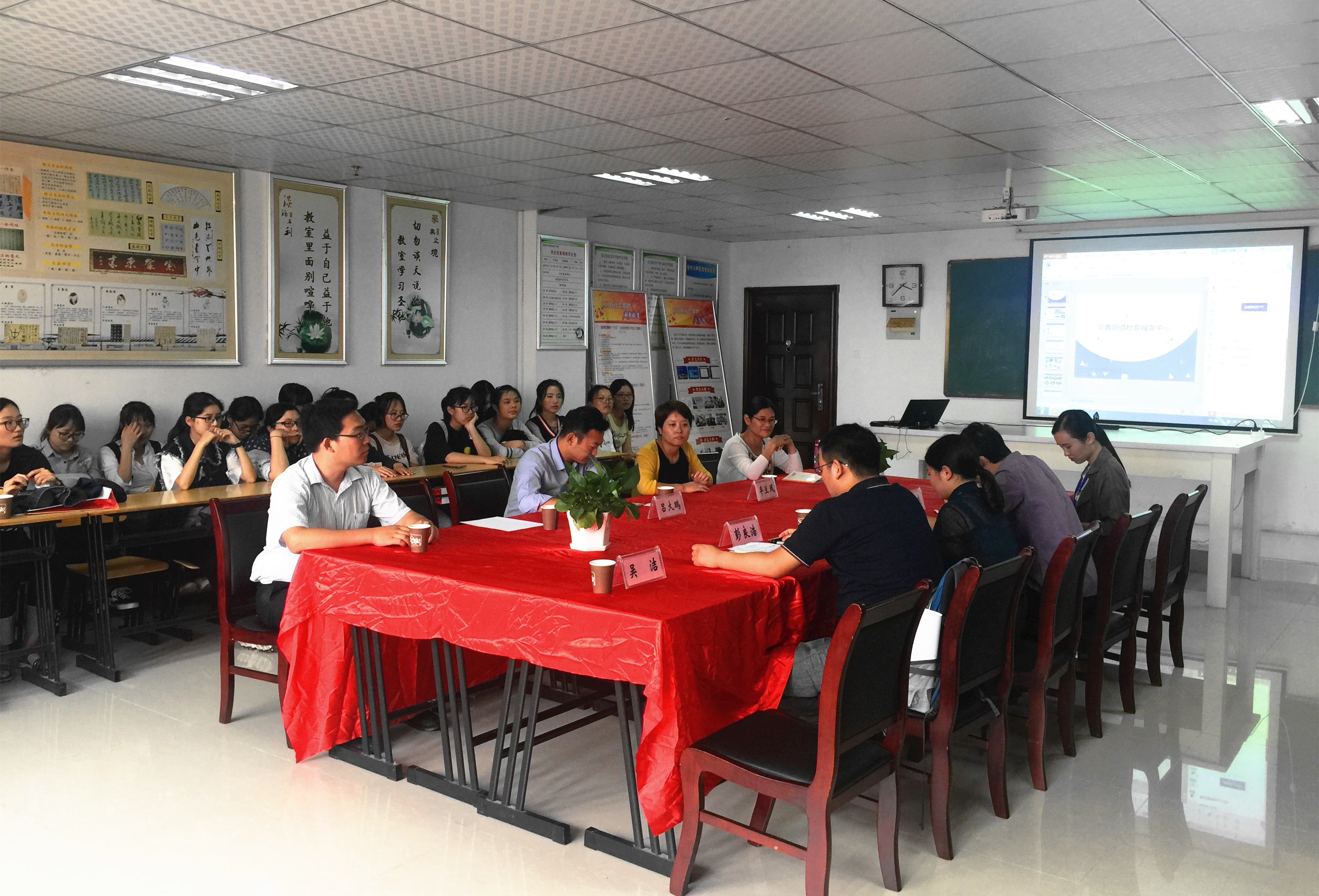 本次参观学习的主要内容由三个部分组成:第一站,参观包河区社会组织创新园;第二站,参观包河区常青街道;街道中心主任我校12届社工专业校友吴洁,从自身多年工作经历出发,与新生们进行了一场直观体验式社工文化经验交流。第三,主题班会:此次参观学习的最后一项内容——主题讨论班会在包河区常青街道社会服务中心接待室内隆重举行。会上,合肥市包河区社会组织服务中心主任彭良浩和爱邻社会工作服务社总干事柏俊对包河社区组织的基本状况、服务范围等进行了系统介绍,新生们也结合自身参观感受踊跃提问,积极参与讨论,整场班会气氛浓烈。最后,本次参观学习活动在院党委副书记吕大鹏的总结性讲话中画上了一个圆满的句号。