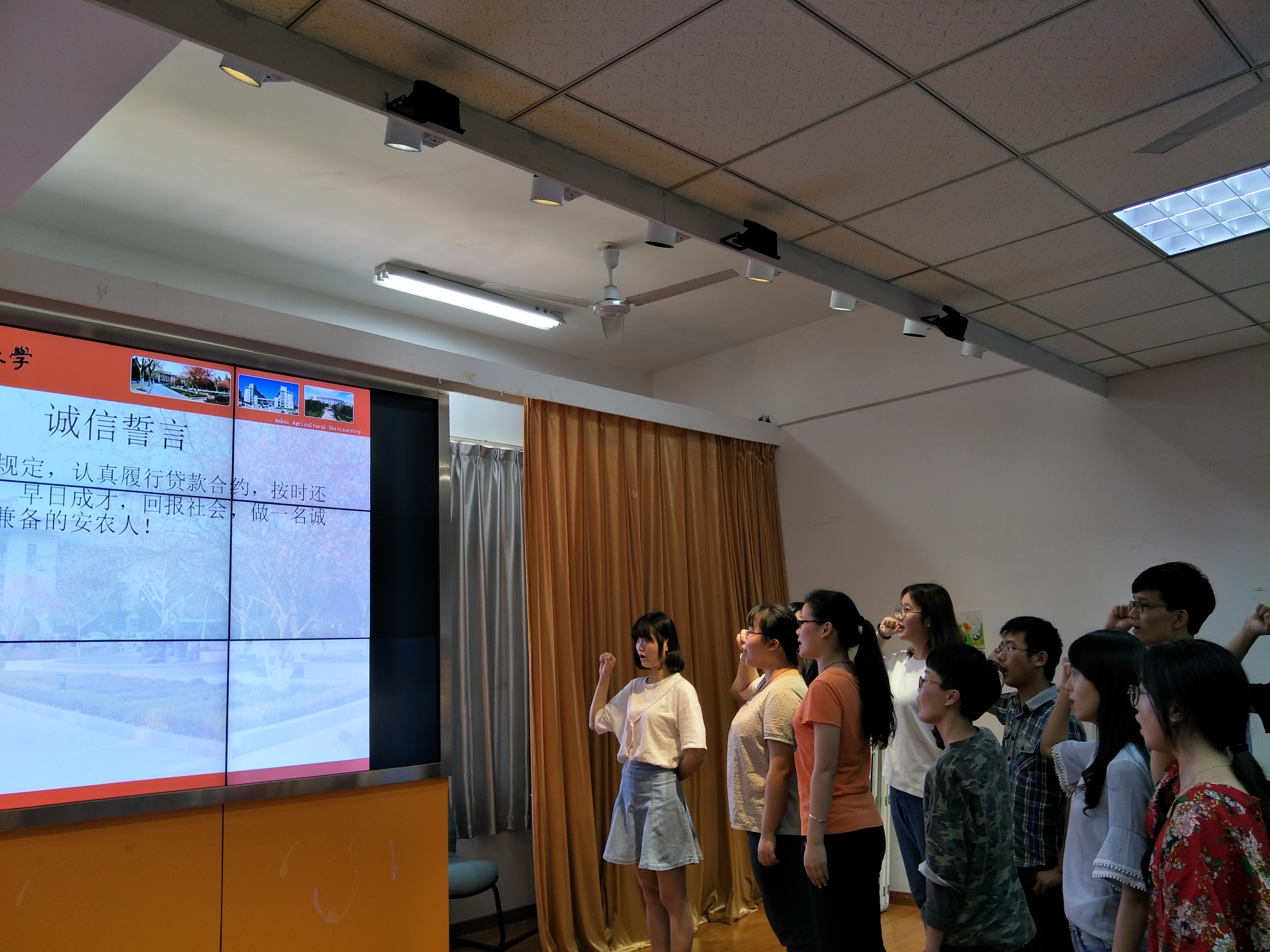 此次活动有我院团委主办,涉及我院各年级、专业同学。活动形式多样:主题班会上,老师与同学们细致沟通,交流心得,结合自身实际深刻体会诚信的重要性;我院特举办诚信签名活动,同学们积极参与,立下自己“履行还款承诺,铸就诚信人生”的承诺;诚信宣誓活动上,同学们满含热情,念出自己的诚信誓言;线上知识竞答活动中,良好的参与度使得此次活动收效甚好。系列活动取得完满成功。