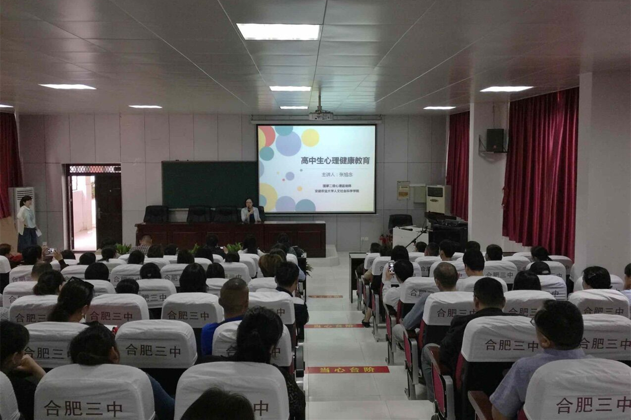 5月5日,合肥三中报告厅内座无虚席,一场题为“高中生心理健康教育”的公益讲座精彩上演,200余名学生家长聆听了讲座。此次公益讲座由学院携手合肥三中共同举办,旨在发挥学院专业优势、不断强化招生宣传影响力、探索与生源基地中学共建新渠道。