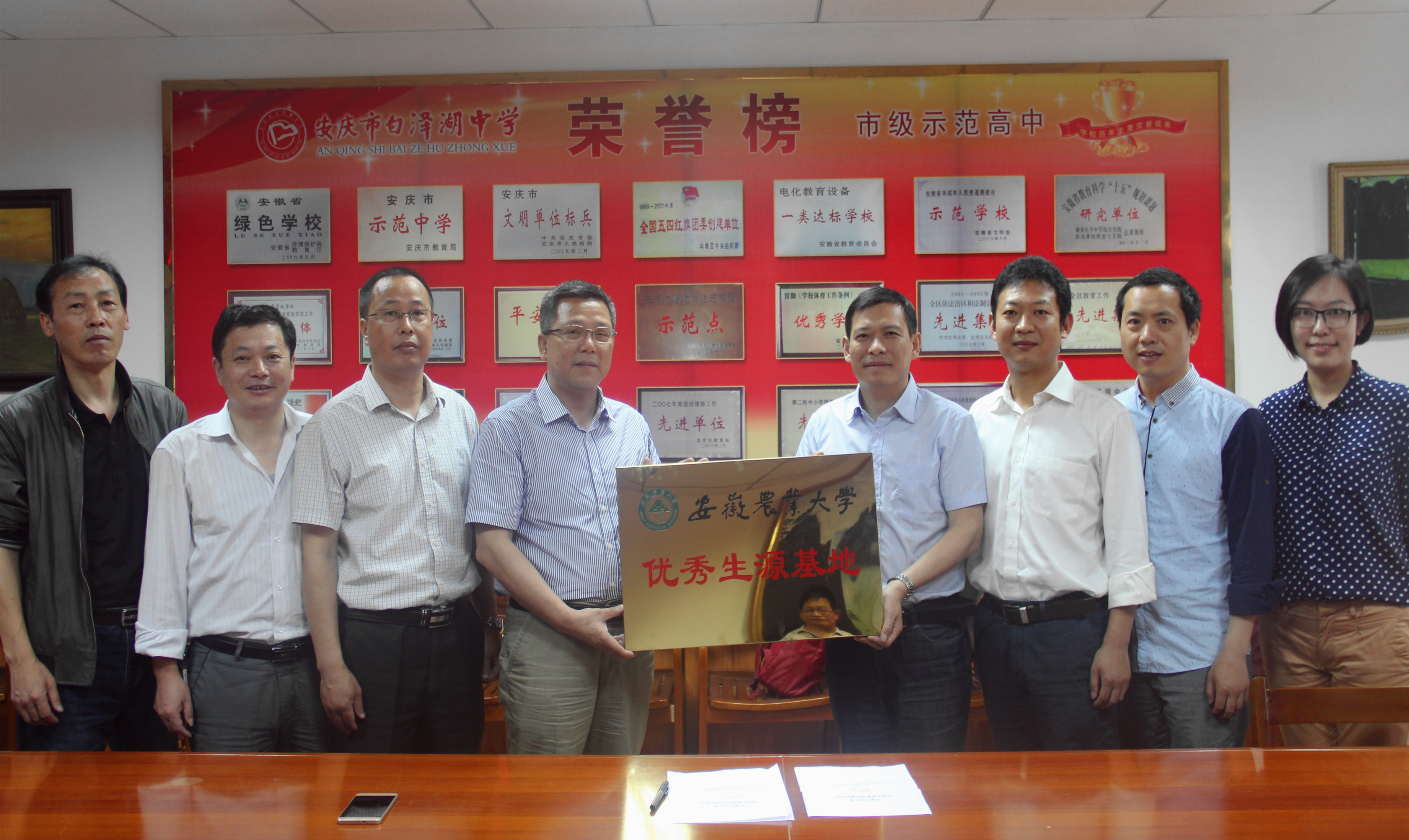 6月1日上午,学院赴安庆白泽湖中学开展优质生源基地挂牌暨招生宣传工作。学院副院长方章东、党委副书记吕大鹏、白泽湖中学校长余谟祥、副校长朱胜利、孙明、王孝来等出席了仪式。