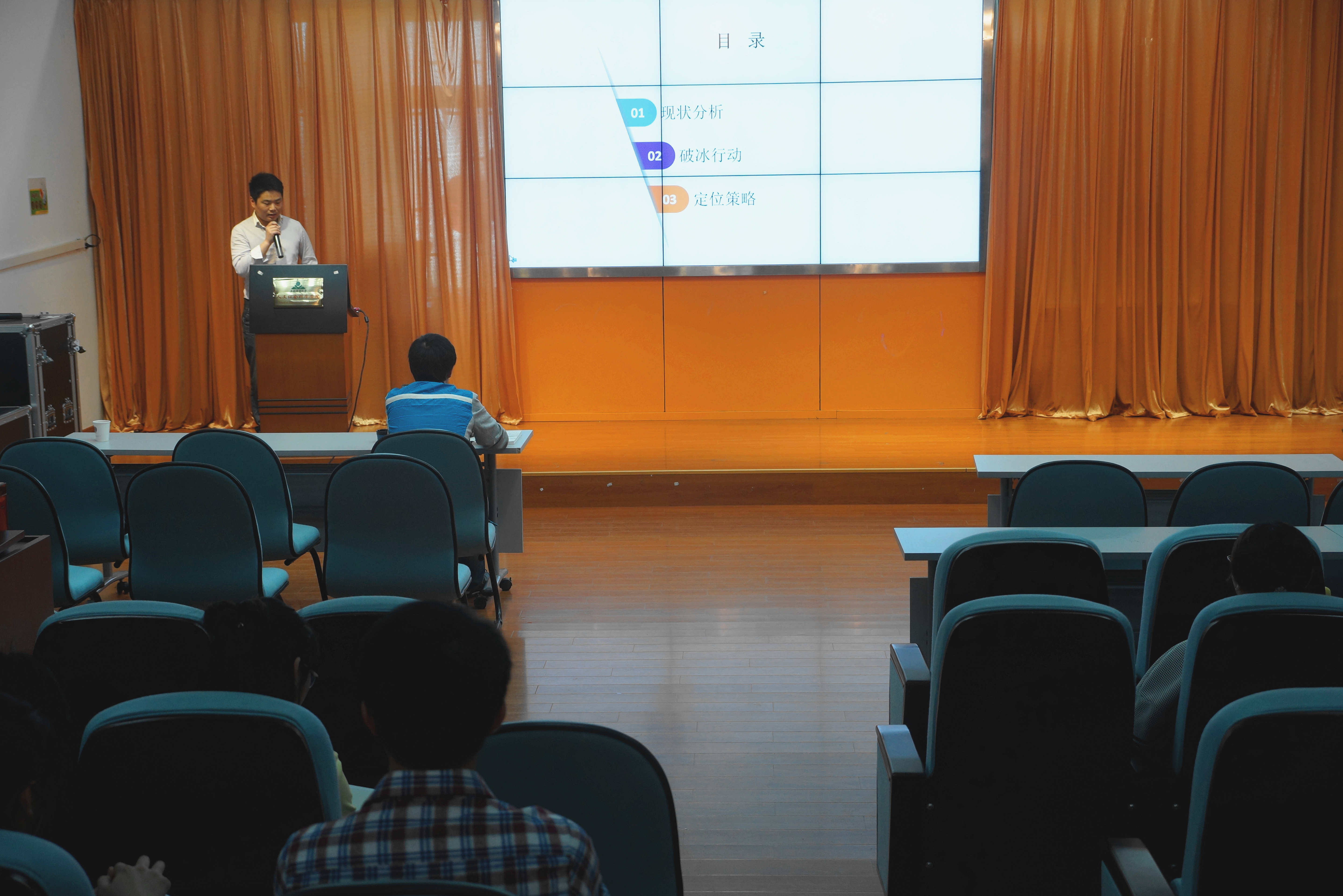 四位校友以“亳州碧桂园产品营销推广方案”、“老乡鸡2013年媒介传播计划”、“微信—新媒体应用”、“广告策划和文案的区别与共性”等为题,以广告营销四阶段流程、广告投放六要素为切入点,结合最新数据为大家讲解作为一名项目策划人员进行广告营销的详细流程。毕业生在分享自己的职场经历、从业经验的同时,不忘勉励在校学弟学妹学会坚持、勇于尝试、创新思维。互动环节中,他们耐心地回答台下每一位学弟学妹的困惑和问题。
