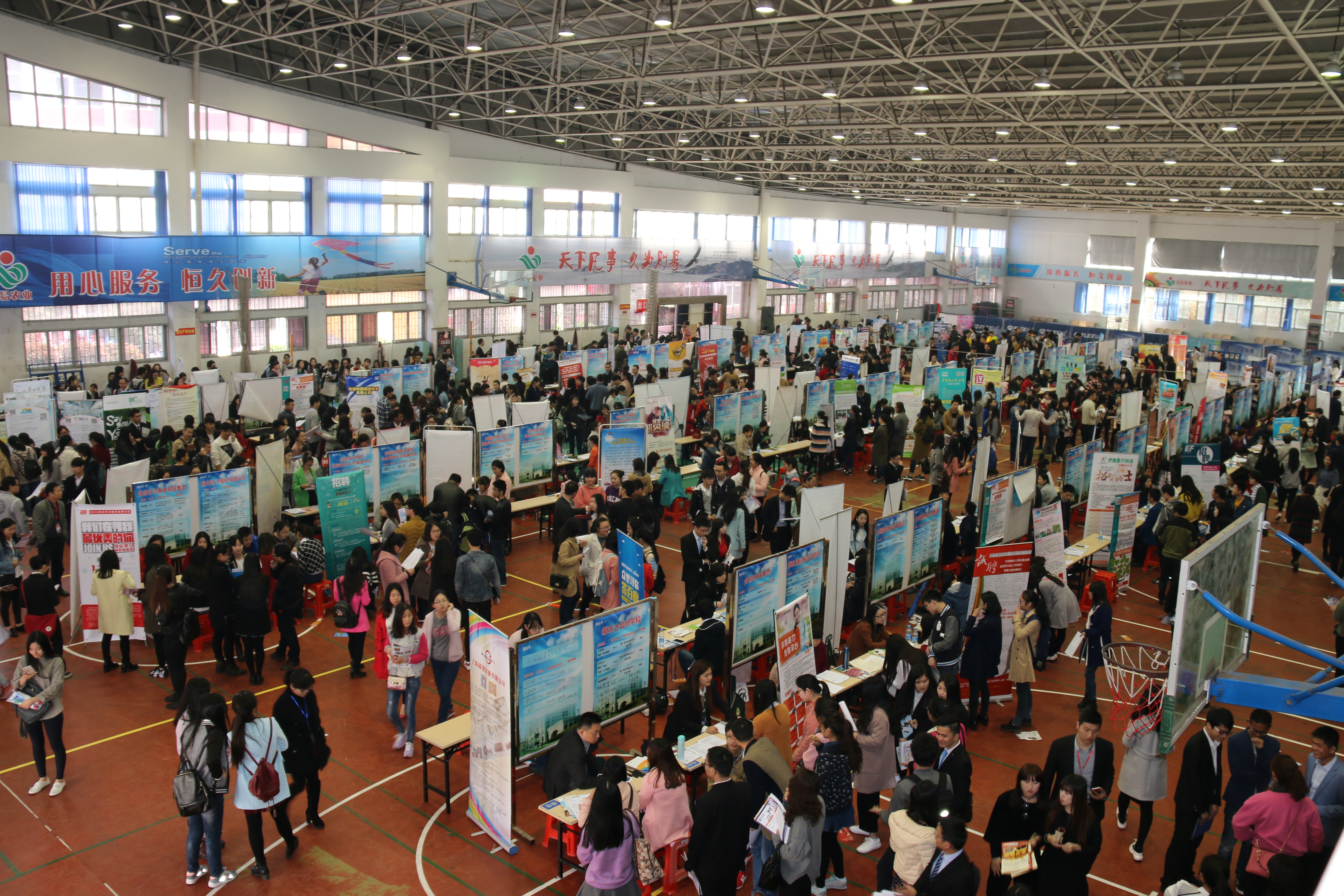 3月20日上午,我院联合经济管理学院、外国语学院在校体育馆举行2016年人文、经管、外语、外贸类毕业生专场招聘会,来自省内外160多家用人单位参会,千余名毕业生参加了招聘会。校招生就业处负责人、学院就业领导组成员莅临现场指导工作,并同各用人单位进行了简短交流,了解各企业招聘需求、员工职业发展等方面的基本情况,同时介绍了与会学院各专业的人才培养模式、就业状况等。
