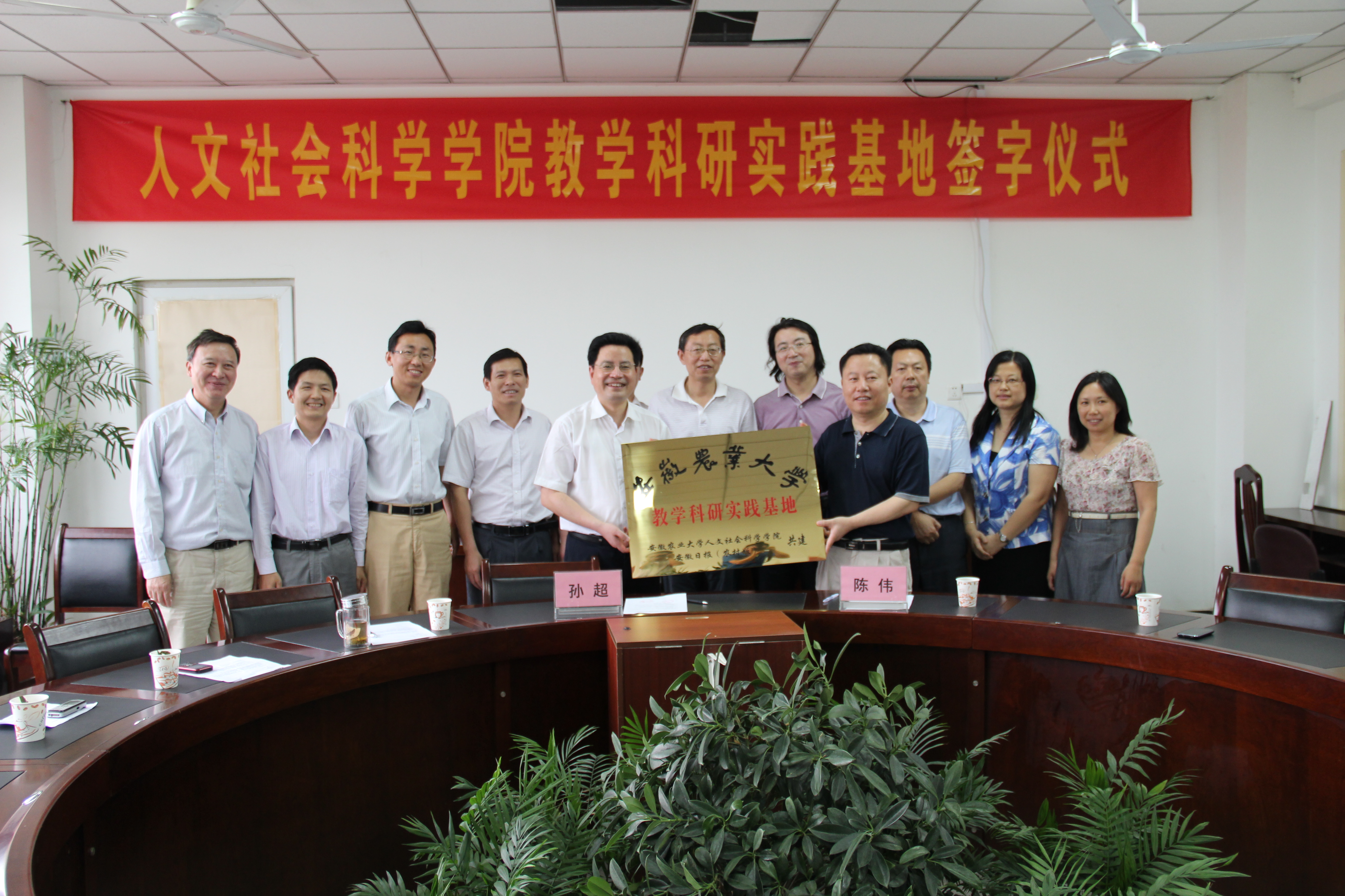 本网讯 6月1日下午,人文社会科学学院与《安徽日报(农村版)》举行实习基地的签字仪式。《安徽日报(农村版)》总编陈伟、副主编王少军、主任陈昌清和学院党委书记管志权、院长孙超、中文系主任沈琳等老师参加了签字仪式。会议由院长助理方国武主持。