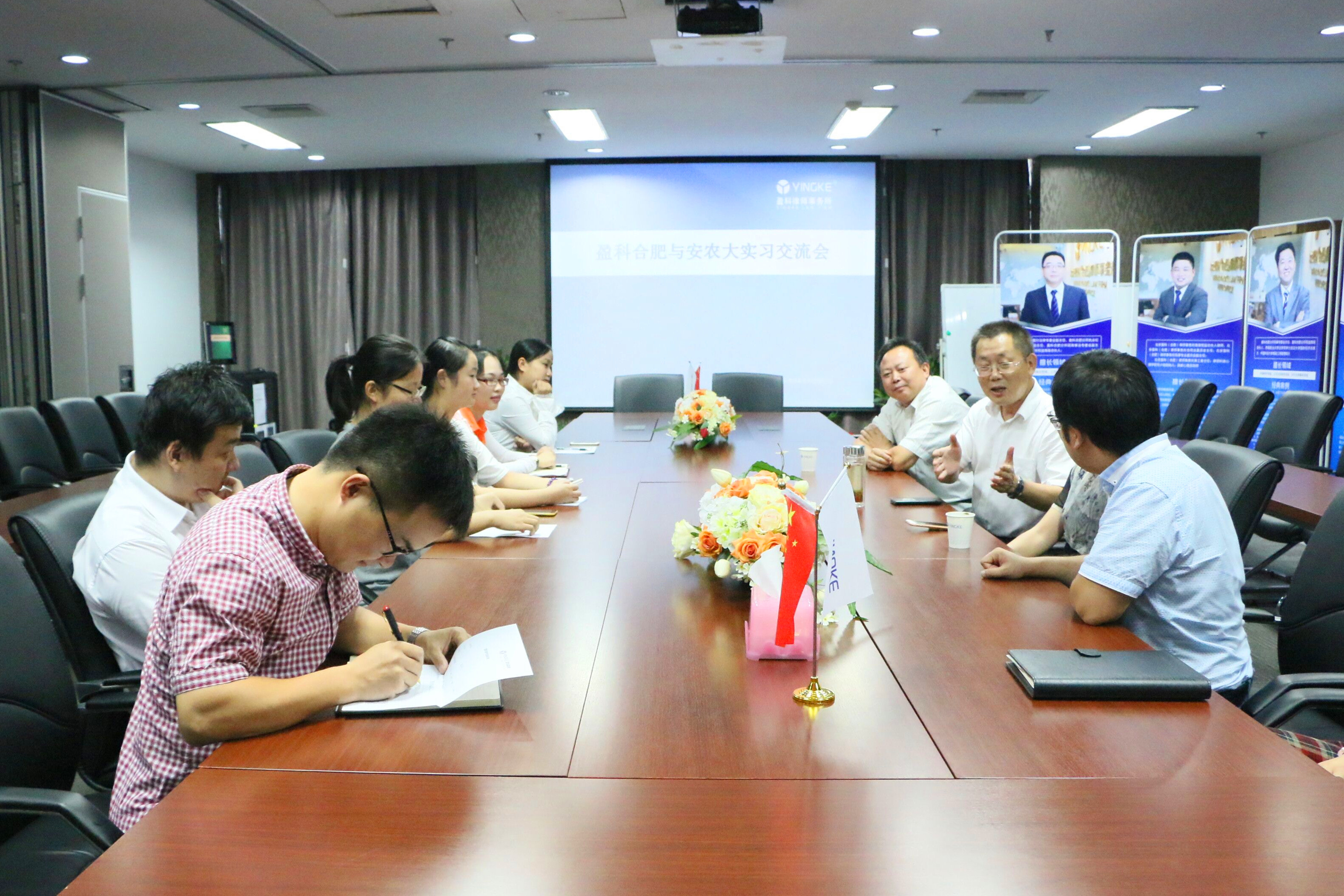近日,法学系欧元雕主任、王凌燕老师一行赴盈科合肥分所,与盈科合肥负责人以及法学专业实习生召开实习交流会,总结此次暑期实习的成果与收获。