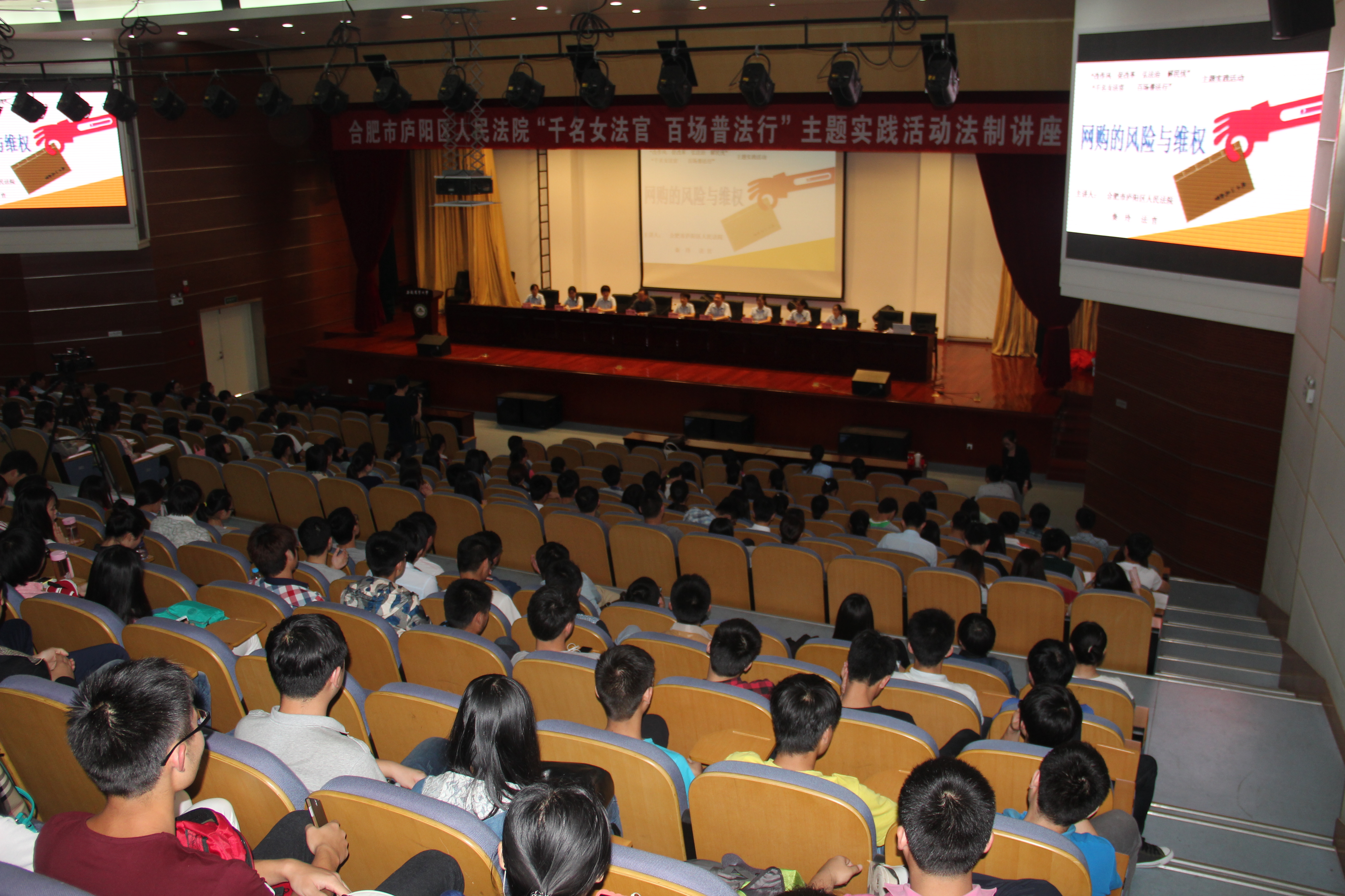庐阳法院审监庭秦玲法官在图书馆第一学术报告厅为400余名师生作了题为“网购的风险与维权”专题讲座。秦法官结合自身审判经验,从网购商品与现实不符、货物在途丢失、个人隐私泄露等风险入手,深入细致地分析了网购中包含的法律关系,并就纠纷产生后管辖法院的确定、相关证据的保留、卖家和网络交易平台的责任分担等内容做了详细阐述。专题讲座之后,现场同学围绕司法改革趋势、法学专业发展前景、微商创业中的法律纠纷及自身遇到的法律困惑等方面提出问题,在场法官做了全面深刻的解答。