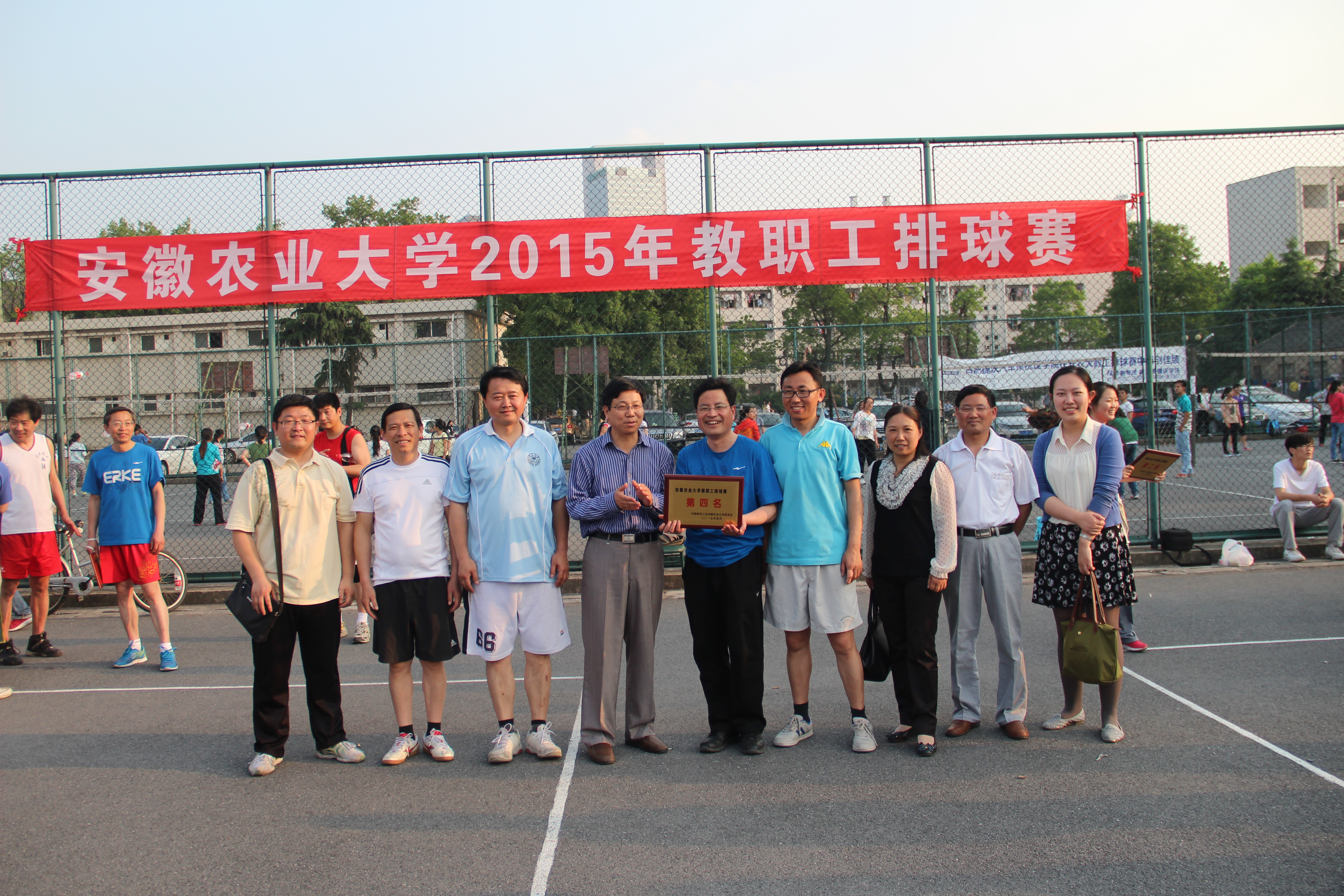 本网讯 4月29日,2015年校教职工排球赛在运动场落下帷幕。学院教职工代表队经过努力拼搏,在小组赛中分别战胜外国语学院、三工会、一工会、动物科技学院等代表队以小组第一的成绩强势进入八强赛,又以2:0的成绩战胜工学院代表队进入四强,最终学院教职工荣获第四名的好成绩。