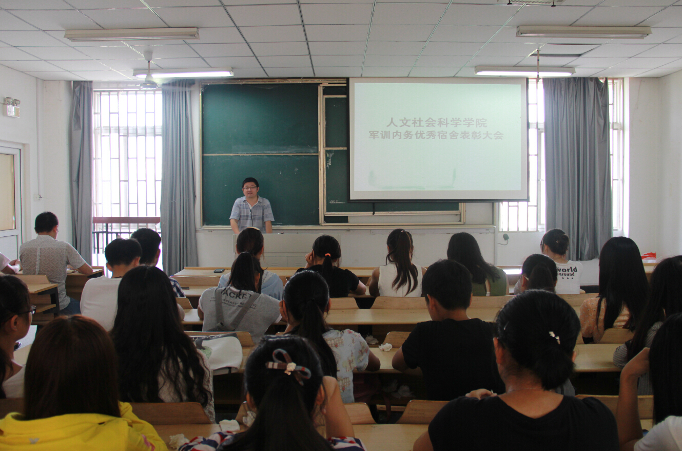 本网讯 9月29日,学院在人文楼202室举行了2014年军训内务优秀宿舍表彰会,学院党委副书记韩弥明、学生分会学生干部和新生宿舍寝室长参加了会议。