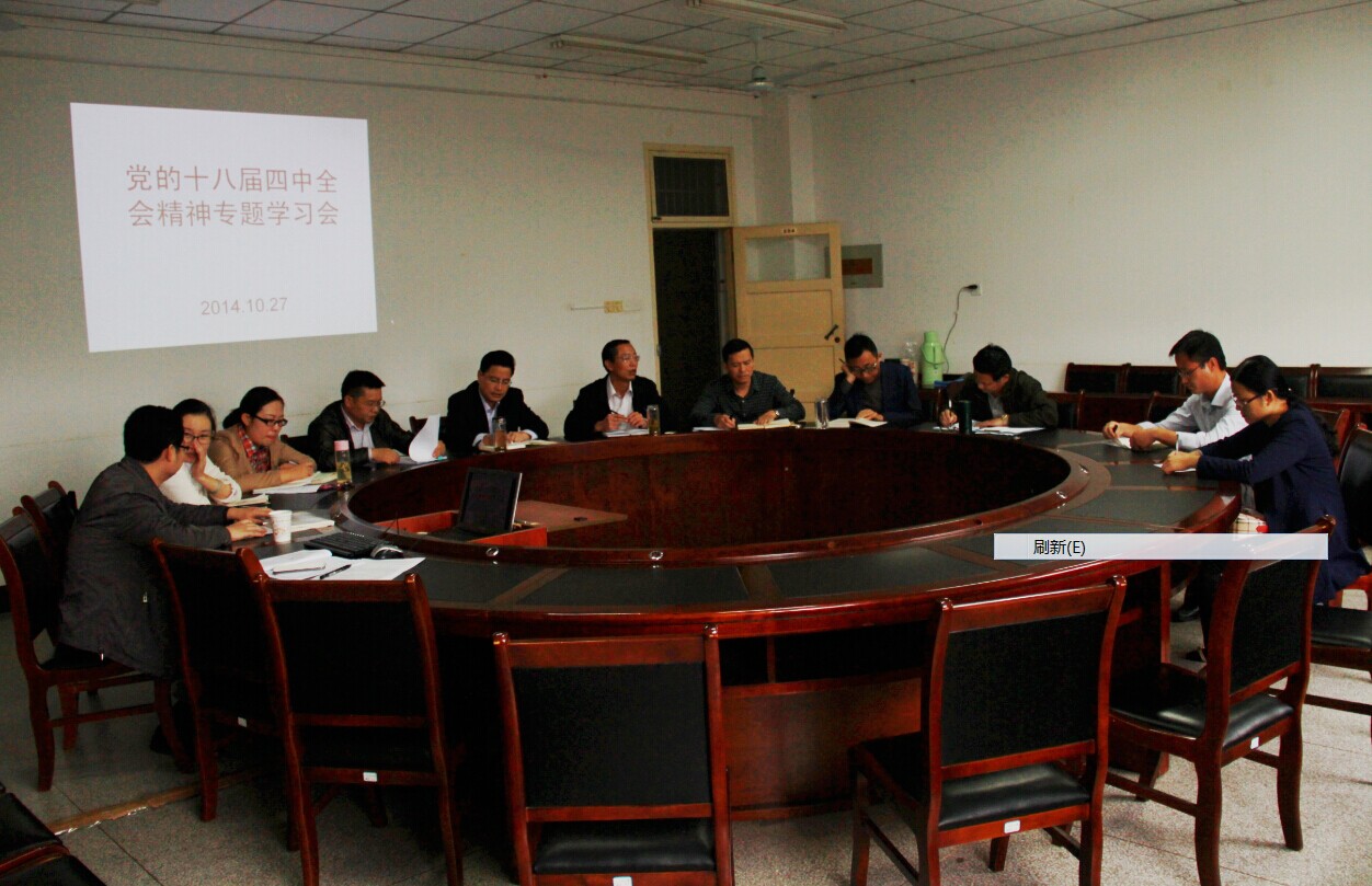 本网讯 10月27日,人文社会科学学院党委中心组在人文楼204室召开专题学习会,学习党的十八届四中全会精神。学院党委委员和党支部书记参加了会议,会议由学院党委书记管志权主持。