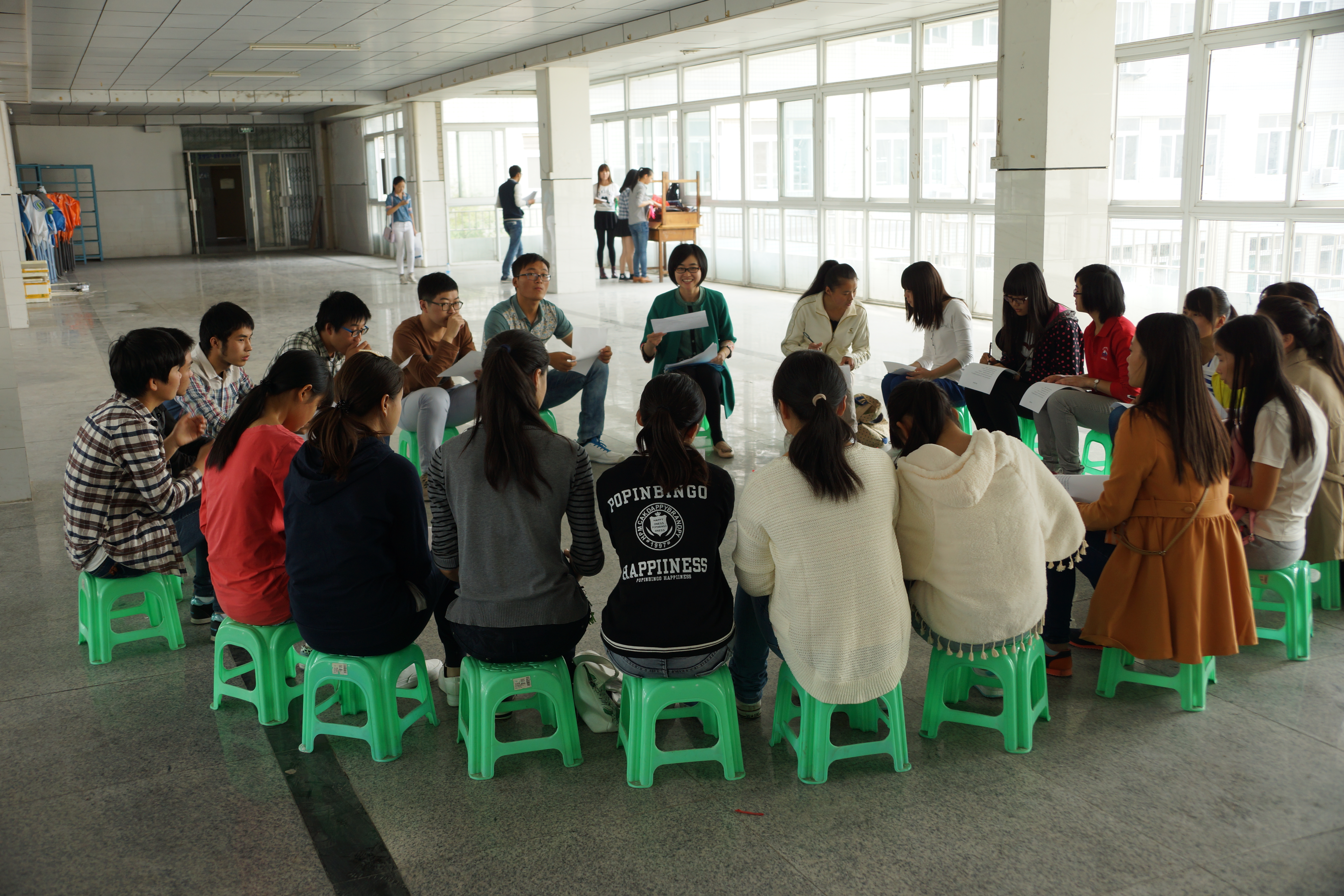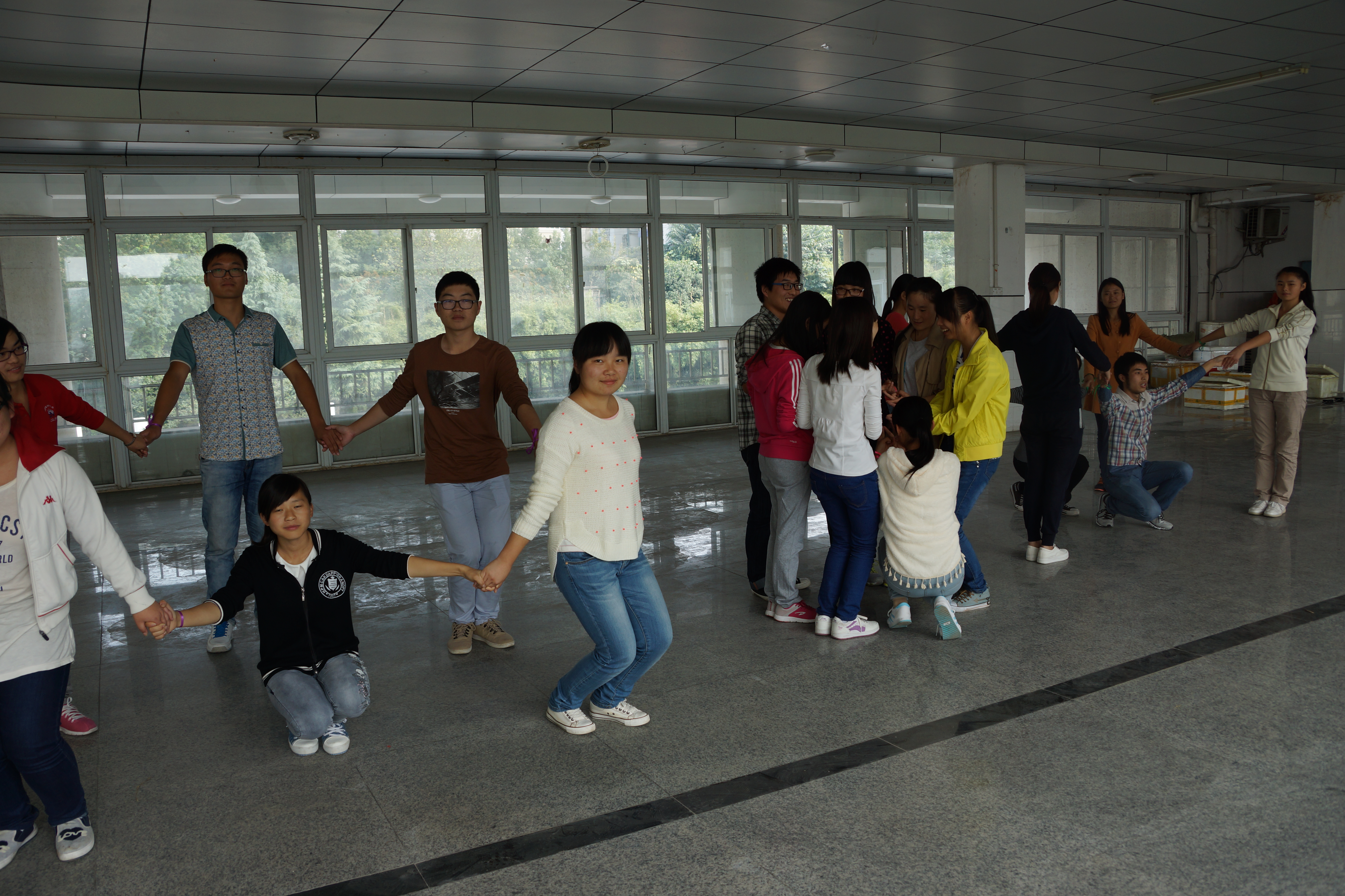 为促进学员更好地适应大学,规划大学,10月18日中午,正青春工作室针对向日葵班员特点,开展以“培养阳光心态,凝练团队精神”为主题的体验式培训。培训分为团体分享与团体实操两个部分。在团体分享阶段,学员结合各自的生涯规划展开互动沟通。在团体实操阶段,学员通过“团体圆舞曲”、“踩报纸”、“你演我猜”等游戏,加深沟通,感受到团队的温暖与集体的力量。