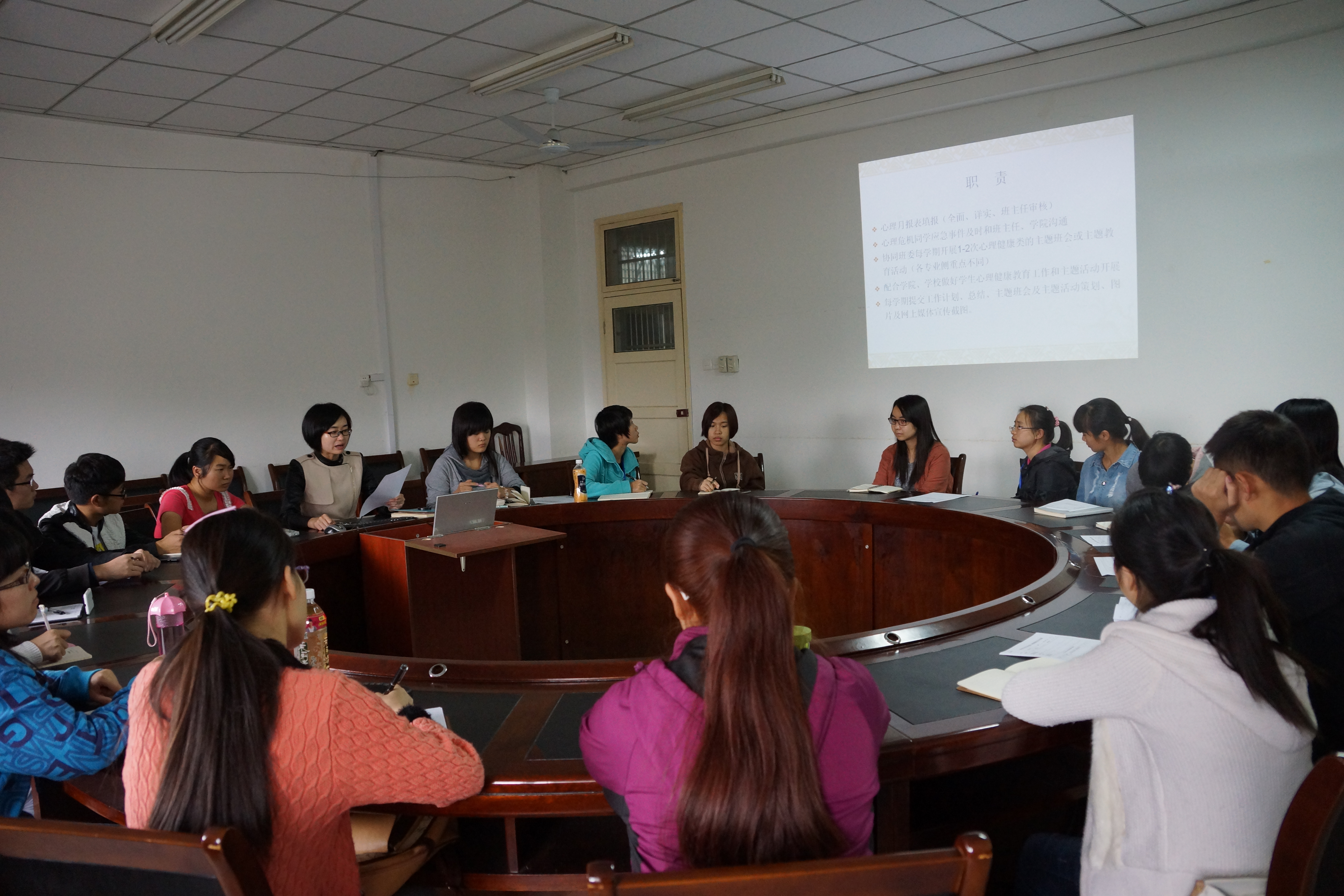 10月28日中午,正青春工作室组织从各专业心理委员中选拔出的16位心理联络员与6位院心联会骨干,成立暖阳班,暖阳取其温暖柔和之意,寓意心理委员在日后的工作中能以仁爱之心关爱同学,给予温暖。为了让学院学生心理健康教育工作及各班级心理健康教育工作高质量进行,工作室负责人从心理委员的工作职责、工作要求、工作技巧、工作考评等方面给暖阳班学员进行培训,同时通过网络班级QQ群、工作室微信平台即时分享工作心得与学习资料。