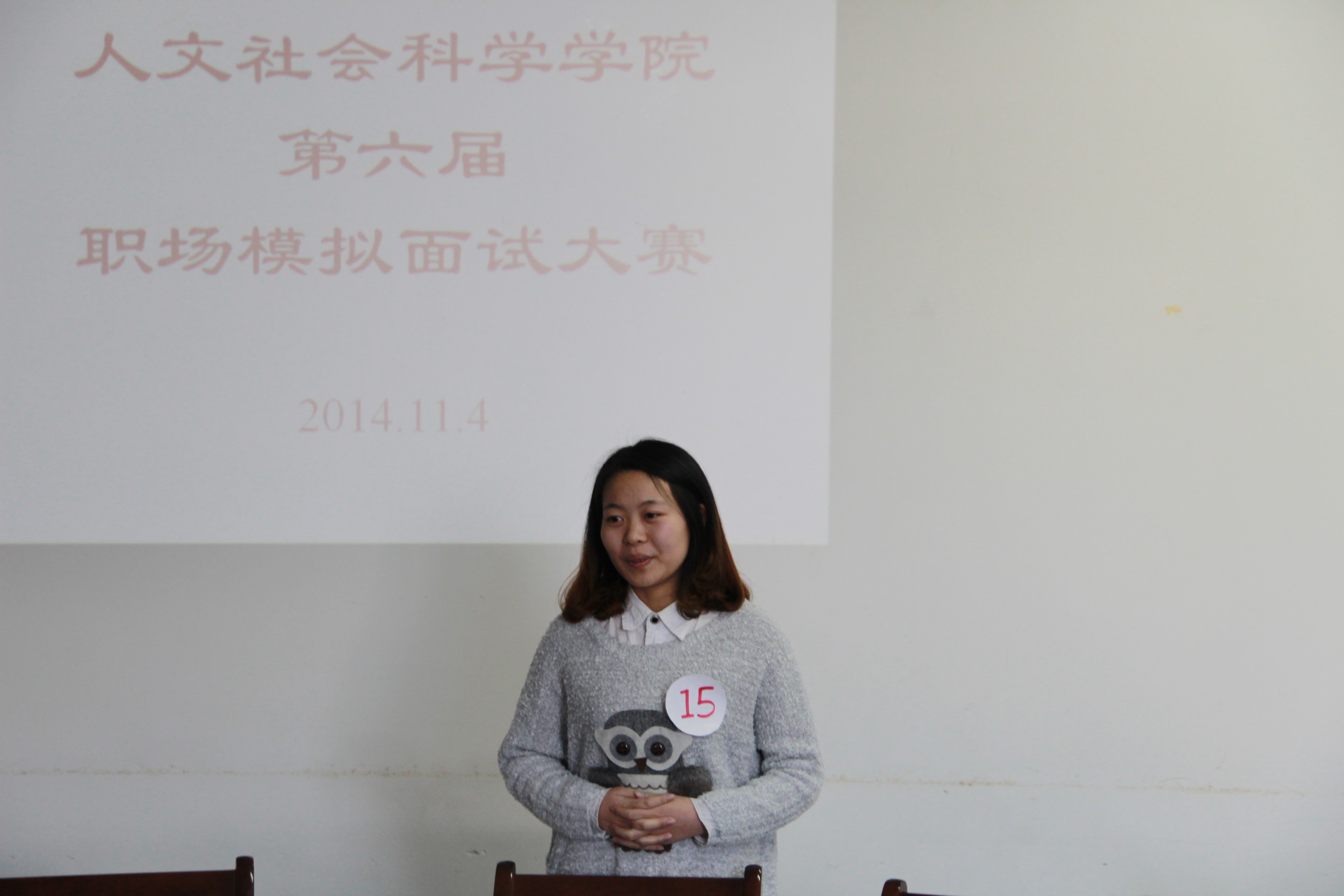 11月4日中午,由人文学院团委主办,人文学院学生会学宣部协办的院第六届职场模拟面试大赛在人文楼204会议室隆重举行,院团委老师担任评委。
