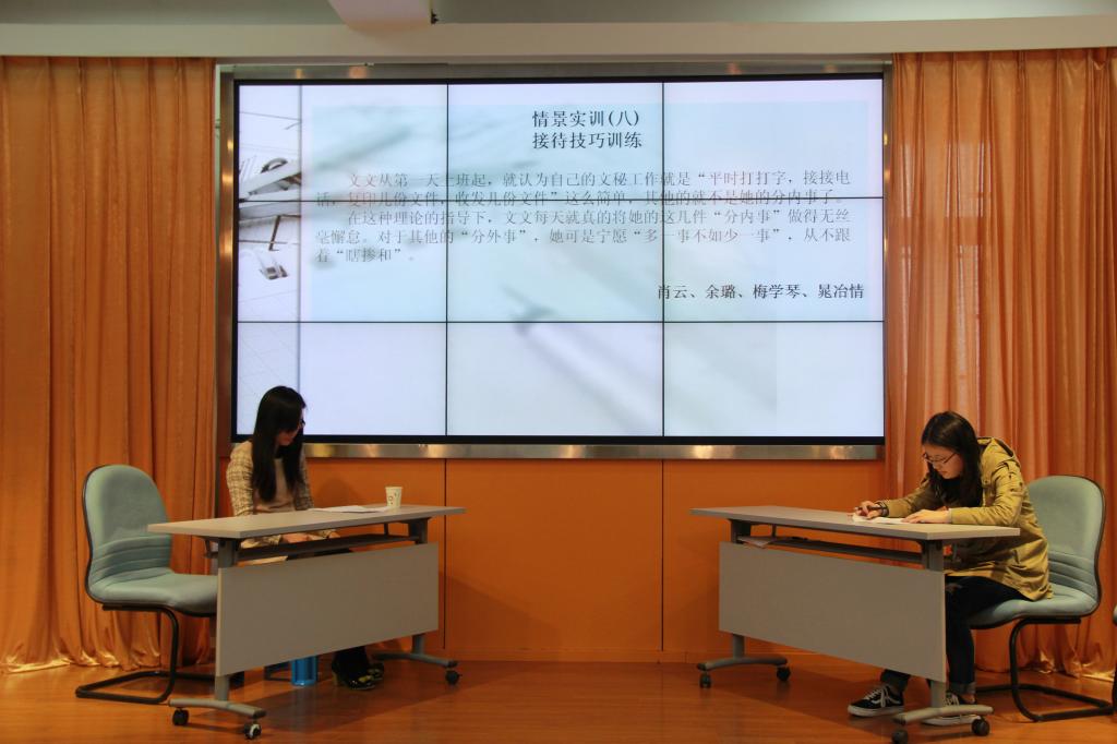 “表演过程中,同学们的表演有不符合现实的地方,细节的夸张也表现出我们对秘书工作理解的不到位。”张大和、丁天明结合自己多年来在秘书岗位的体验,对同学们的表演进行了点评。两位老师对此次活动给予了高度评价的同时,也针对每个节目进行了详细点评,对秘书工作中可能遇到的问题给出了新的解答。
