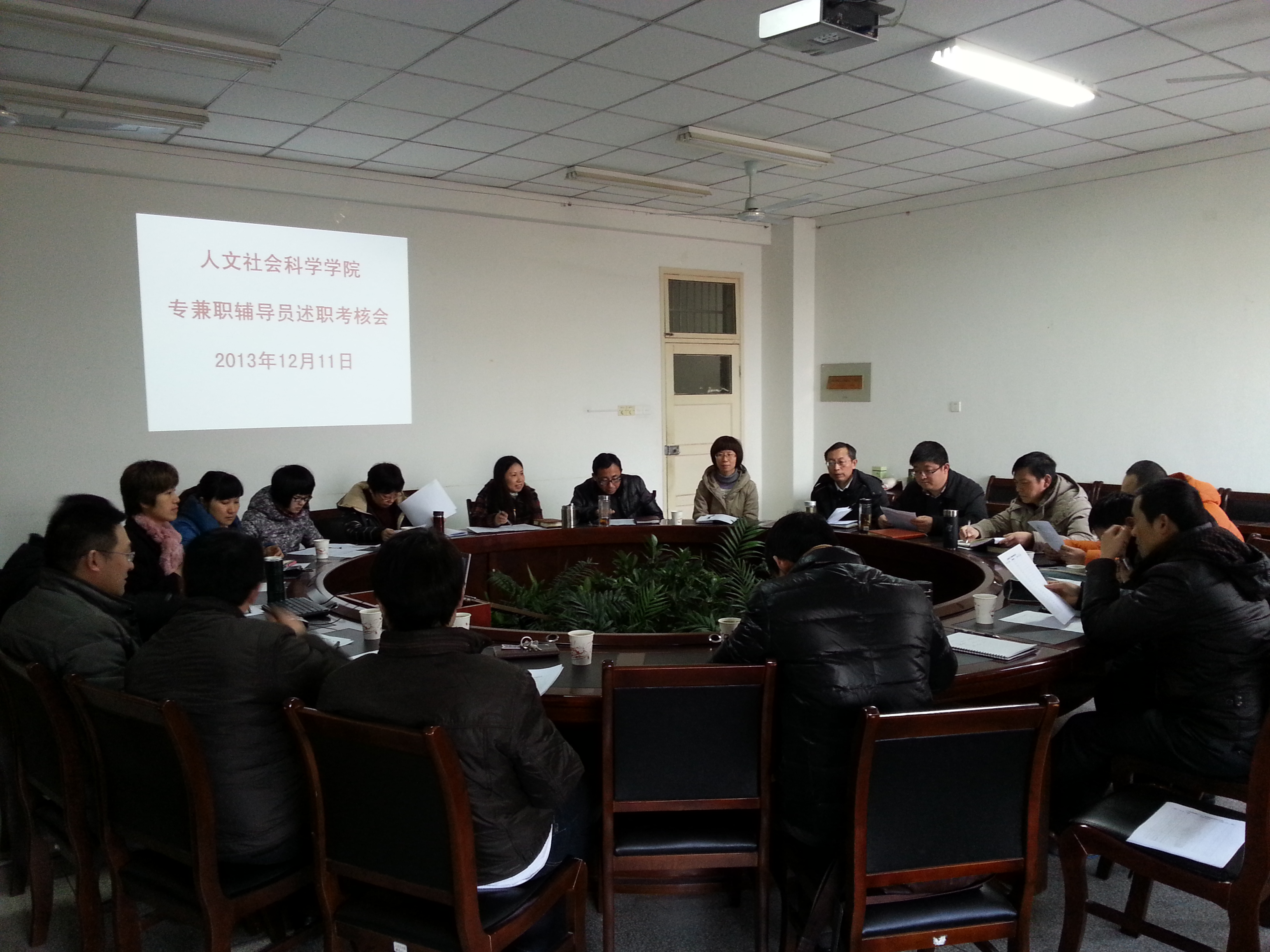 本网讯 12月4日,学院在人文楼204室召开2012-2013年度专兼职辅导员述职考核大会,学院党政领导、全体专兼职辅导员参加了会议。会议由院党委副书记韩弥明主持。
