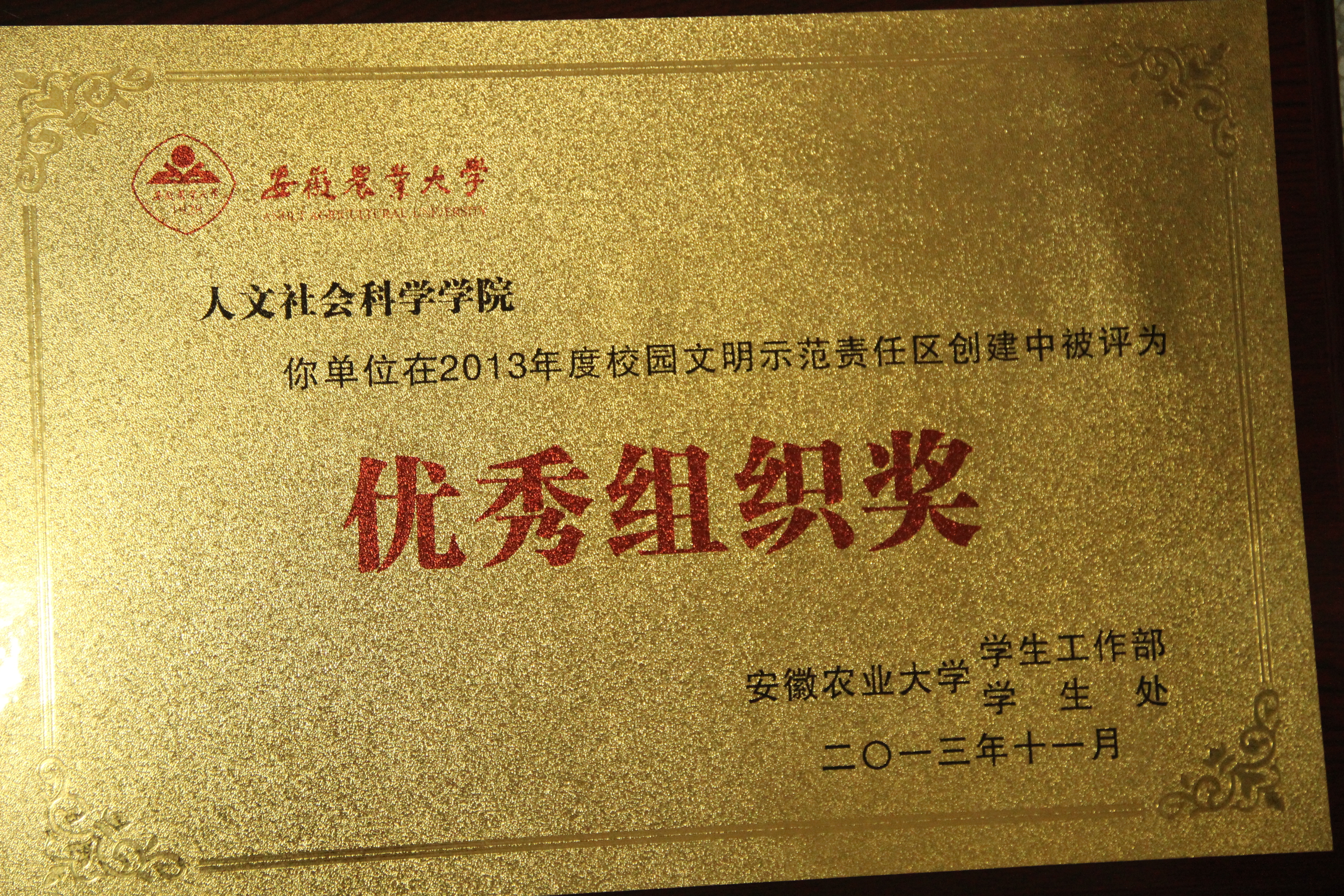 学院荣获校园文明示范责任区建设优秀组织奖