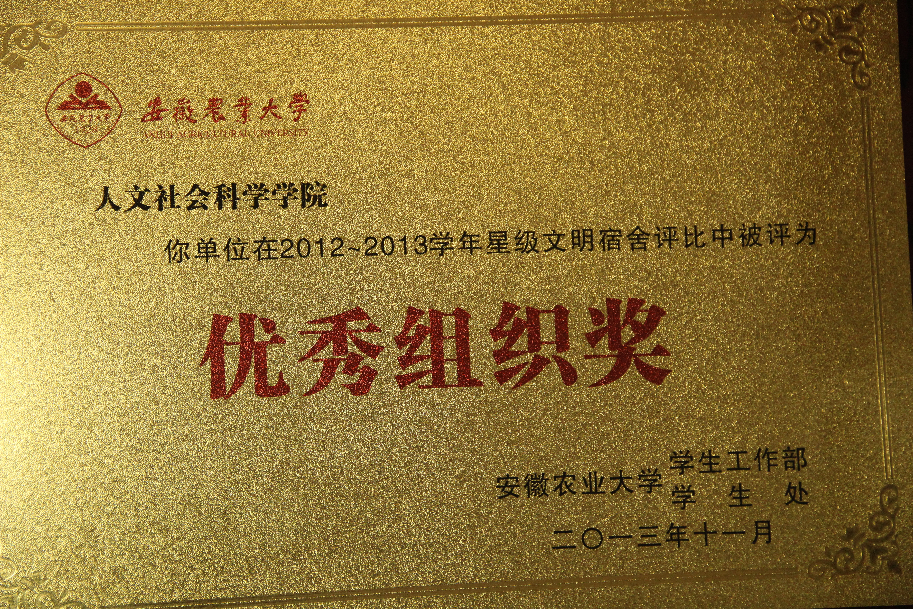 会上,学生处对校园文明示范责任区建设、星级文明宿舍评比先进单位进行了表彰,我院荣获“校园文明示范责任区建设优秀组织奖”和“星级文明宿舍评比优秀组织奖”。同时我院共有28个寝室荣获星级宿舍,其中公寓4栋415宿舍获得五星级校文明宿舍称号。