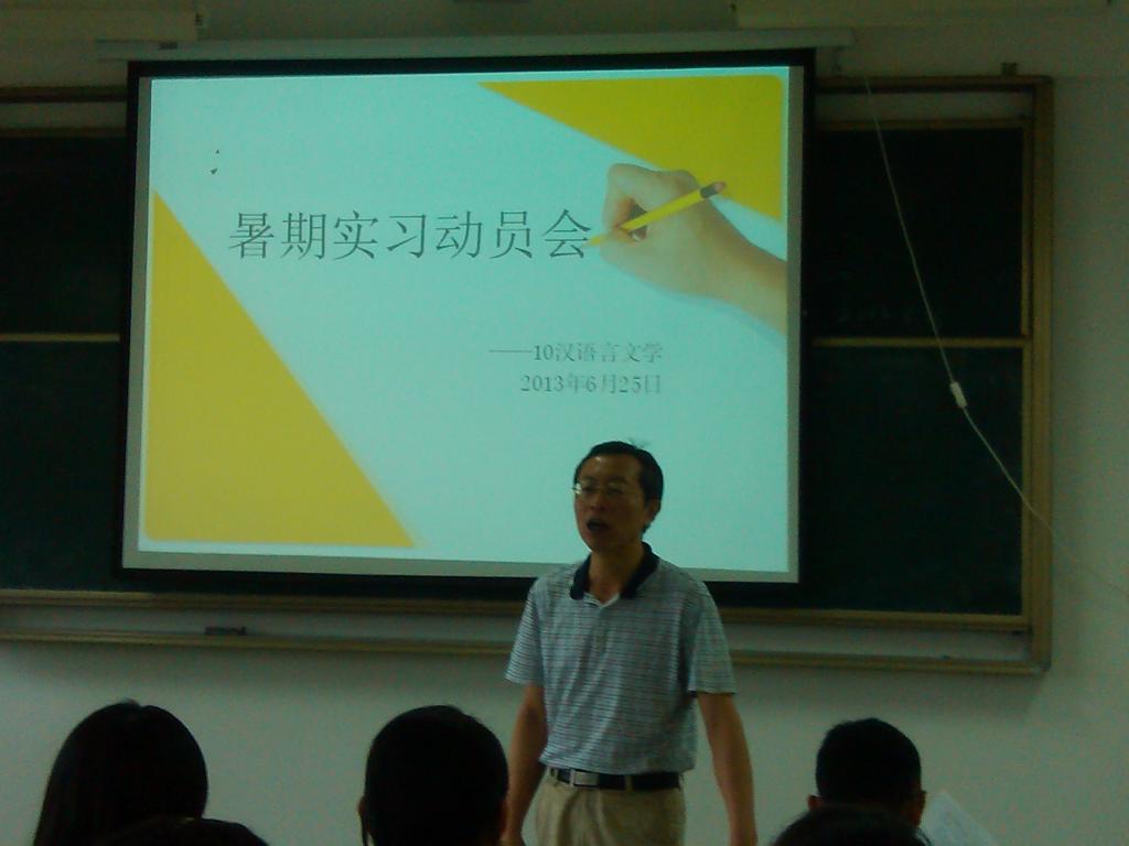 本网迅 6月25日,2010级汉语言文学专业实习动员大会在人文楼606教室召开。人文学院党委书记、2010级汉语言文学专业辅导员管志权,学院副院长方国武及中文系副主任胡贤林等出席动员会并作动员指导。会议由中文系主任沈琳主持。