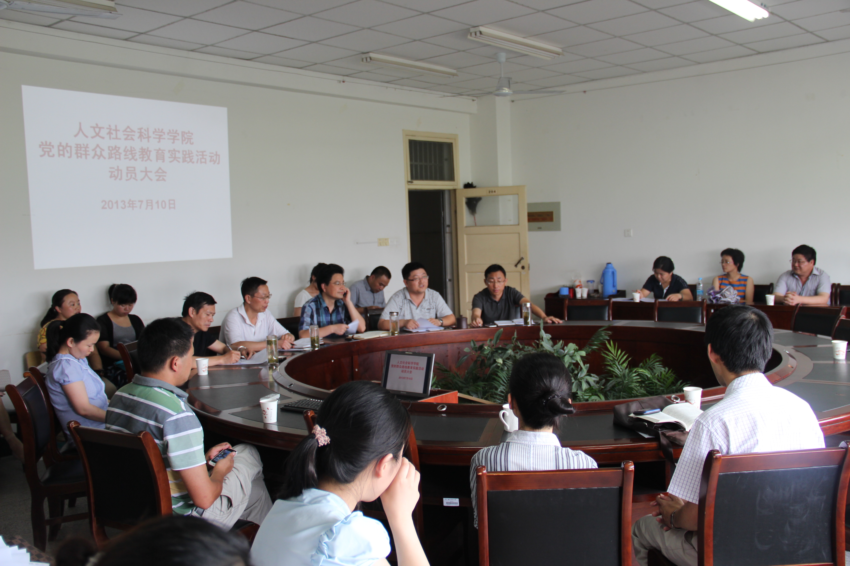 本网讯 7月10日,学院在人文楼204室召开党的群众路线教育实践活动动员会,传达落实学校党的群众路线教育实践活动动员大会精神。学院党政领导和全体教职工参加了会议。会议由院党委副书记韩弥明主持。