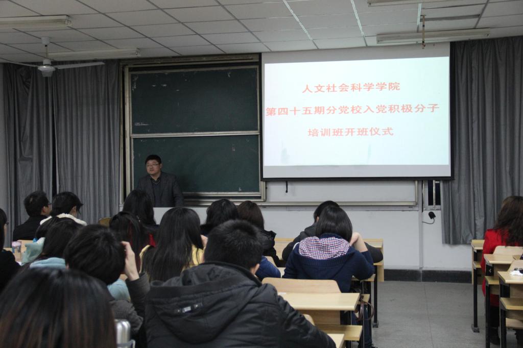 本网讯 3月27日,人文社会科学学院举行第45期分党校开班仪式。院党委书记管志权、副书记韩弥明、院党委秘书张大和、党课班主任以及45期分党校全部学员参加了仪式。管志权同志结合多年党建工作的经验为同学们做了主题为《党的指导思想、性质、纲领和基本路线》的首场辅导报告。