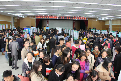 本网讯 3月10日上午,我院联合经济管理学院、外国语学院在校大学生活动中心四楼多功能厅举办了2013年人文、经管、外语、外贸类毕业生专场招聘会,来自省内外70余家用人单位受邀参会。