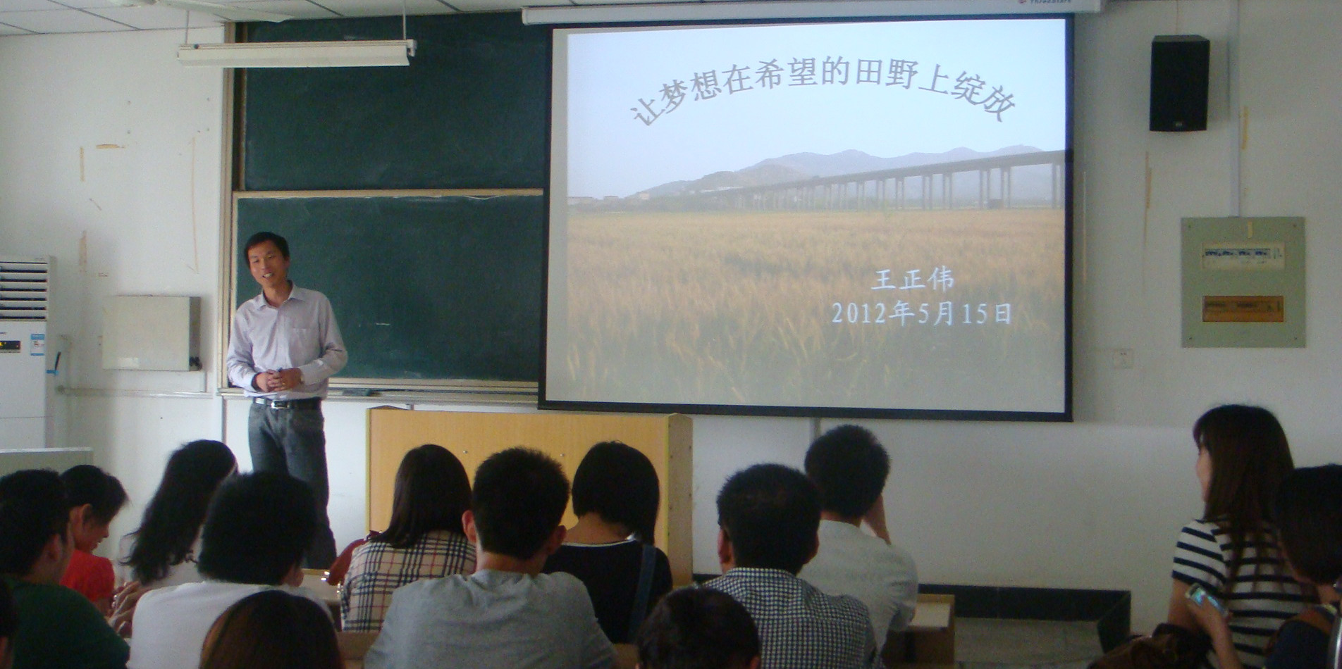 本网讯 5月15号下午,学院校友、省首届优秀大学生村官标兵王正伟(2008届社会工作专业毕业生)来学院做校友报告会,报告会题为“让梦想在希望的田野上绽放”,主题围绕大学生村官选聘报考动员与政策解读展开。