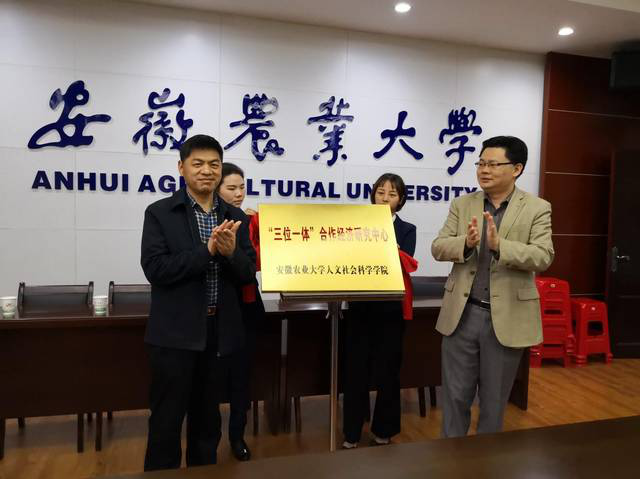 4月14日,安徽农业大学人文社科学院“三位一体”合作经济研究中心正式揭牌成立,副校长马传喜、中共中央编译局中国现实问题研究中心副主任陈林共同为中心揭牌。人文社科学院院长方章东、科技处副处长周逸辛以及来自河南、山东、安徽的政、产、学、研等各界代表40余人出席了揭牌仪式。