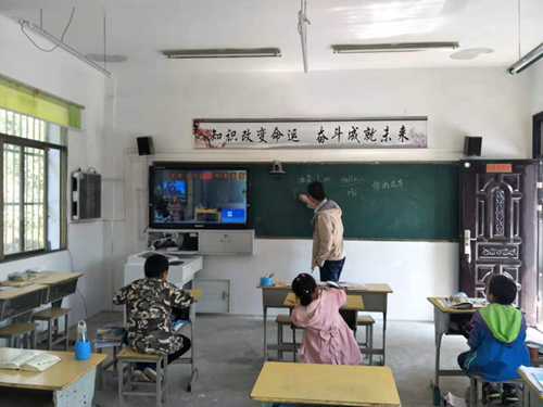 与此同时,王传傢和刘成成两位实习生在王润老师带队下前往金寨县双河镇大畈村的大畈中欧光彩小学进行教学实习和教育扶贫。大畈中欧光彩小学是一所山村小学,这里教师资源匮乏。王传傢和刘成成两位同学承担着二三年级实习班主任和二三年级的语文、数学教学以及三四年级的英语教学。两位实习生教学任务繁重,每天要讲授语文等多门课程。为了更有效地落实教育扶贫,两位实习老师在放学后,也分别走进学生家中,辅导学生课后作业和拓展课外活动。