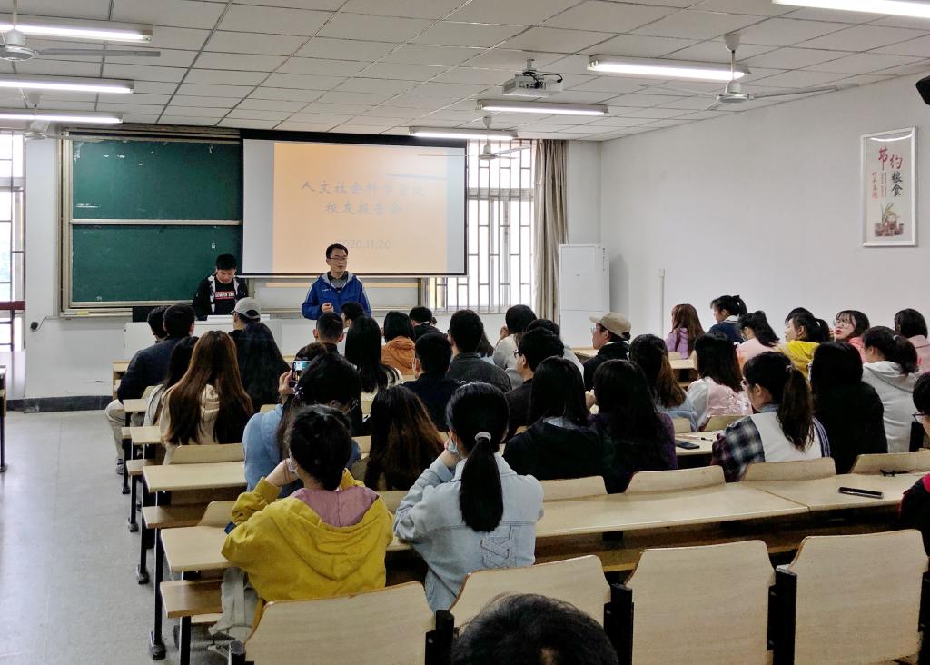 为提升就业服务质量,引导青年学子强化职业发展意识、树立职业发展目标,11月20日,人文社会科学学院2020年就业指导活动月系列活动之校友报告会在人文楼202成功举办。学院2012届社会工作校友唐力担任主讲嘉宾,为同学们带来题为“大学生学业规划漫谈”的精彩讲座,一百余名师生共同聆听了报告会。报告会由学院党委副书记吴永红主持。