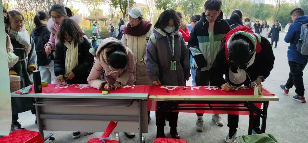 本网讯 为深入学习宣传习近平法治思想,弘扬宪法精神,12月4日,在第七个国家宪法日和国际志愿者日到来之际,学院利用“一院一品”志愿服务平台,组织开展了“学习宣传习近平法治思想,弘扬宪法精神”暨“无毒校园,美好青春”禁毒志愿者签名活动,吸引了全校数百名学子参与并留下签名。大家纷纷表示,在国家宪法日当天参与普法主题活动很有意义,自己也要争做一名光荣的普法者,带动更多的同学参与到普法和禁毒知识的宣传工作中。