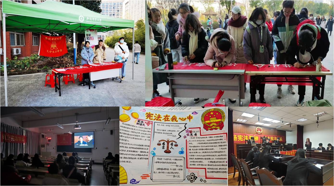 本网讯 宪法是我国的根本大法。2020年12月4日是第七个国家宪法日,为深入学习宣传习近平法治思想,弘扬宪法精神,维护宪法权威,12月上旬,学院组织开展了以“学习宣传习近平法治思想,大力弘扬宪法精神”为主题的宪法宣传周系列活动,精心设计了涵盖理论学习研讨、普法实践、送法入校园等活动版块,组织开展了法制观影、主题海报征集、“无毒校园,美好青春”禁毒志愿者签名等特色子活动。