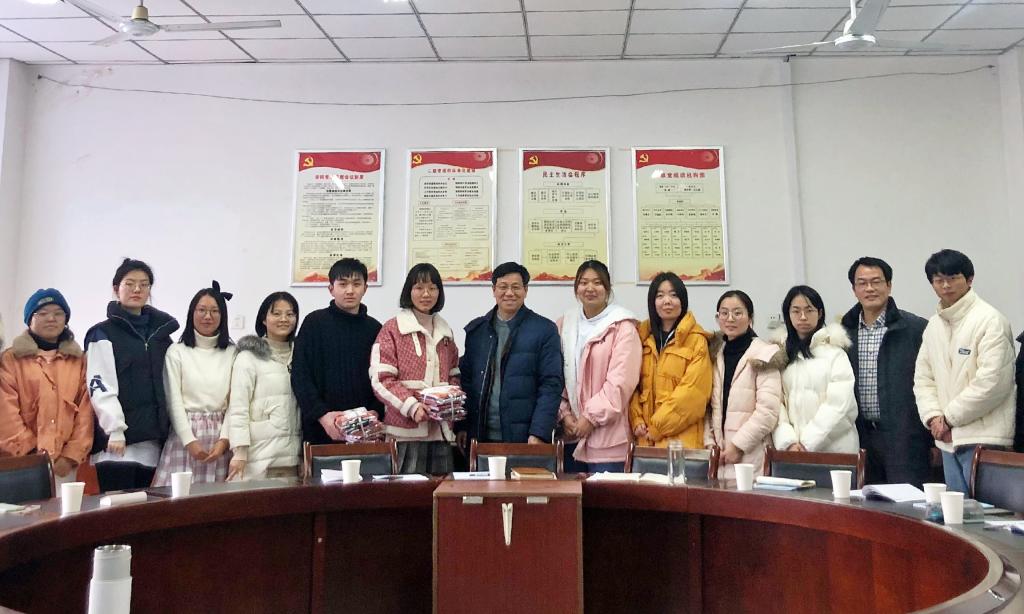 专题党课结束后,裴树东为支部考研学子送上考研礼包,送去了学生党支部冬日的温暖和祝福。