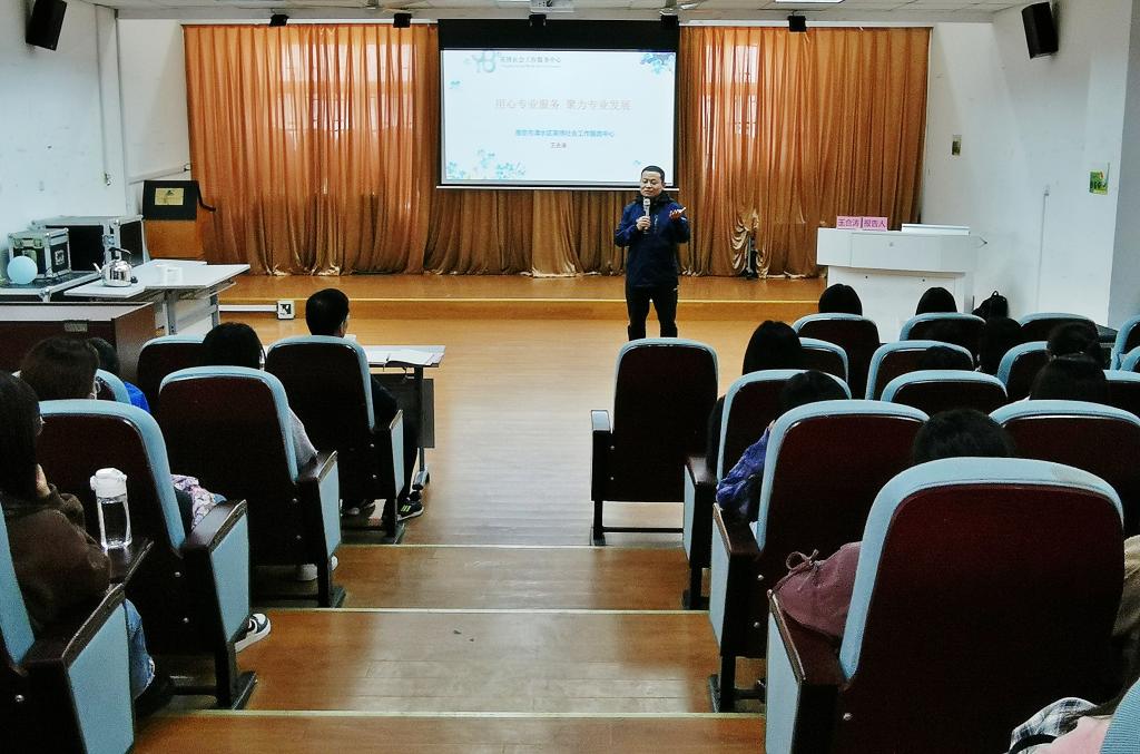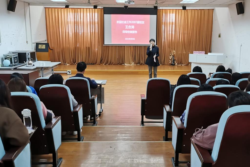 4月9日,社会学系邀请2009届社会工作专业校友王合涛,为学院社会工作专业在读学生介绍社工行业发展及分享专业成长经验,报告会由社会学系主任叶良均主持。