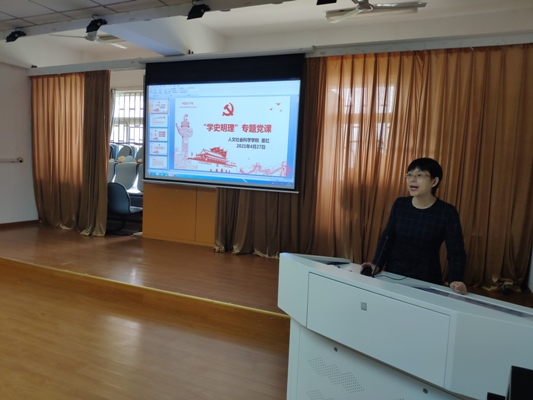 4月27日下午,人文学院研究生党支部在人文楼602报告厅召开“学史明理”专题学习研讨会。院长姜红教授到会指导工作并上党课。会议由党支部负责人主持。
