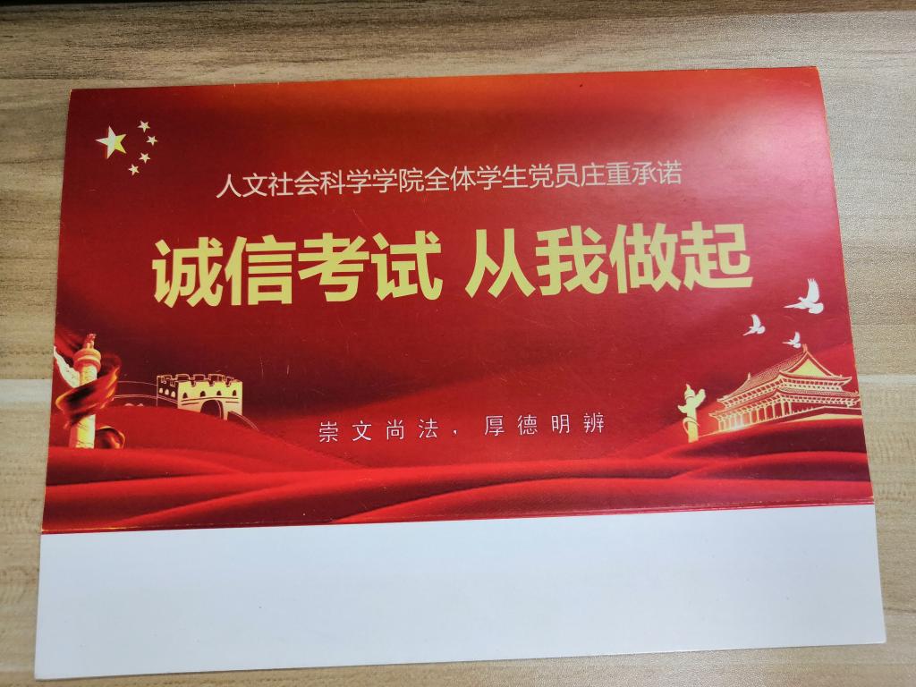 为了发挥学生党员和学生干部的模范带头作用,学院还精心制作了学生党员和学生干部诚信考试名牌,希望通过学生党员和学生干部亮牌的方式来提高同学们的诚信意识。