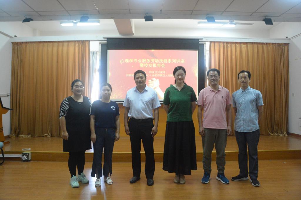 本网讯 9月25日下午,人文社会科学学院在学院602报告厅开启应用心理学专业劳动服务技能系列讲座暨校友报告会。我校校友、合肥市第四人民医院(安徽省精神卫生中心)主治医师郑诚做“在心理咨询中与不同人格对话”报告。学院副书记吴永红、副院长滕瀚参加了活动,报告由心理学系主任王东老师主持,心理学系和实验中心老师,学院约150多名学生聆听了报告。