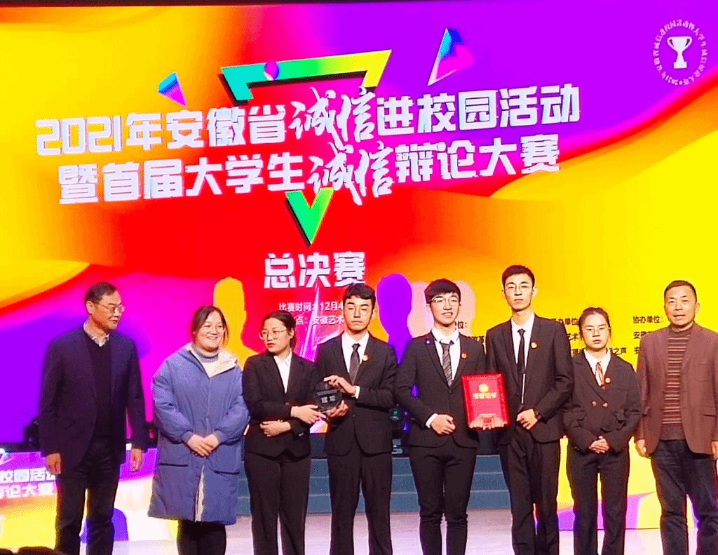 在法学系老师陈红兰、王凌燕的指导下,人文社会科学学院副院长滕瀚的带队协调下,学院的统筹领导下,教务处、创新创业学院的大力支持下,辩论队披荆斩棘,经过合肥赛区选拔赛、安徽省半决赛、安徽省总决赛,多轮辩论竞技,在全省30多支辩论队中最终脱颖而出,喜获冠军。