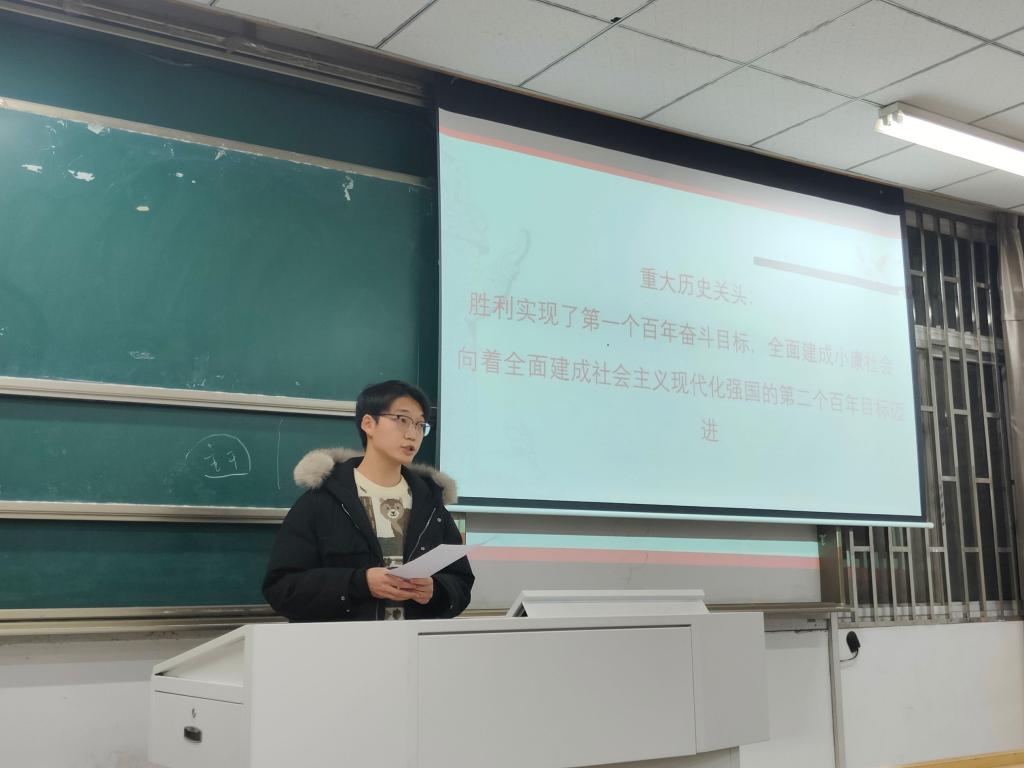 本网讯 为庆祝中国共产党建党100周年,引导广大学生深入学习宣传党的十九届六中全会精神,感悟党的初心使命、传承党的红色基因。12月17日晚,人文社会科学学院青年宣讲团走进学生班级开展青年宣讲活动。宣讲团成员黄勖桐以《从顶层设计层面深入理解<决议>》为题作主题宣讲。