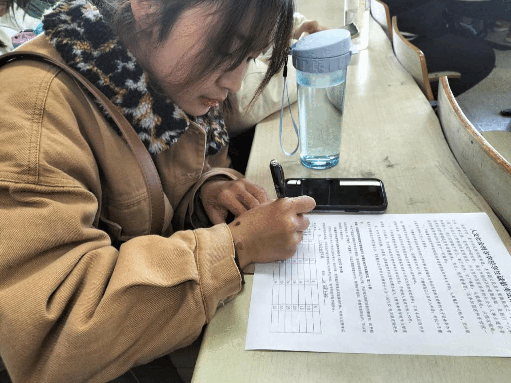 签订现场同学们仔细阅读承诺书内容,熟悉了解《普通高等学校学生管理规定》以及《安徽农业大学学生纪律处分办法(试行)》等文件中关于违反考试纪律的相关处分条例,同时,各年级辅导员在签订现场向同学们倡议严守考纪、严于律己、调整心态、轻松应考,用扎实的知识与求真的态度交上一份满意的答卷。