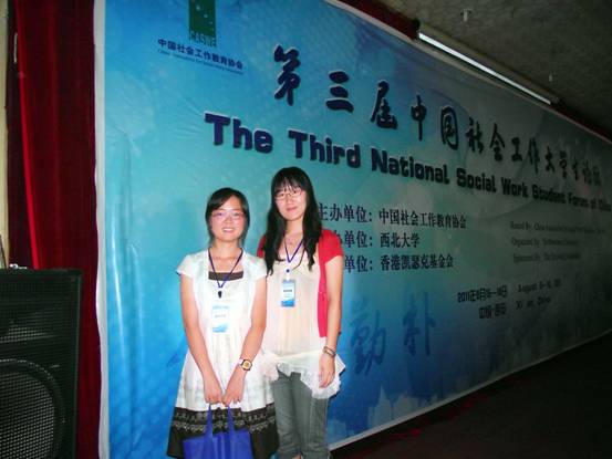 安青网讯 8月14日—15日,由中国社会工作教育协会主办,西北大学承办,香港凯瑟克基金会支持协办的第三届中国社会工作大学生论坛在古城西安顺利召开。安农大人文社科学院社会学系2008级社会工作专业彭程同学和2009级社会工作专业奚亚萍同学代表该校参加了此次论坛。