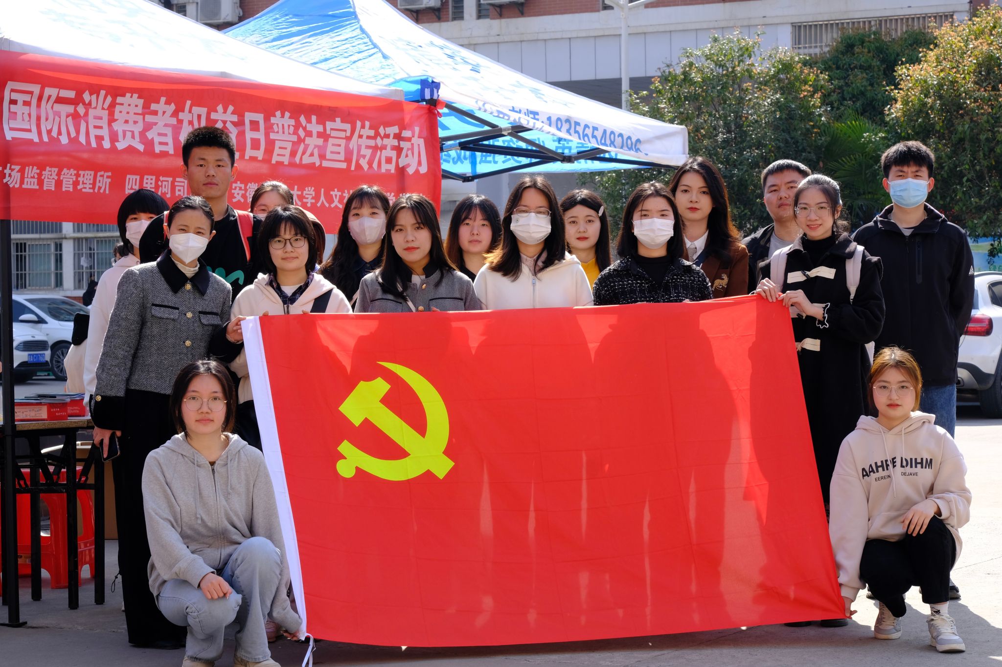 本网讯 为深入普及《中华人民共和国消费者权益保护法》, 宣传“3·15”国际消费者权益日,弘扬法治精神,3月15日上午,人文社会科学学院法学专业学生党支部联合四里河街道市场监督管理所、四里河司法所等在安徽中澳科技学院开展“铸诚信·提信心·促消费”普法活动。