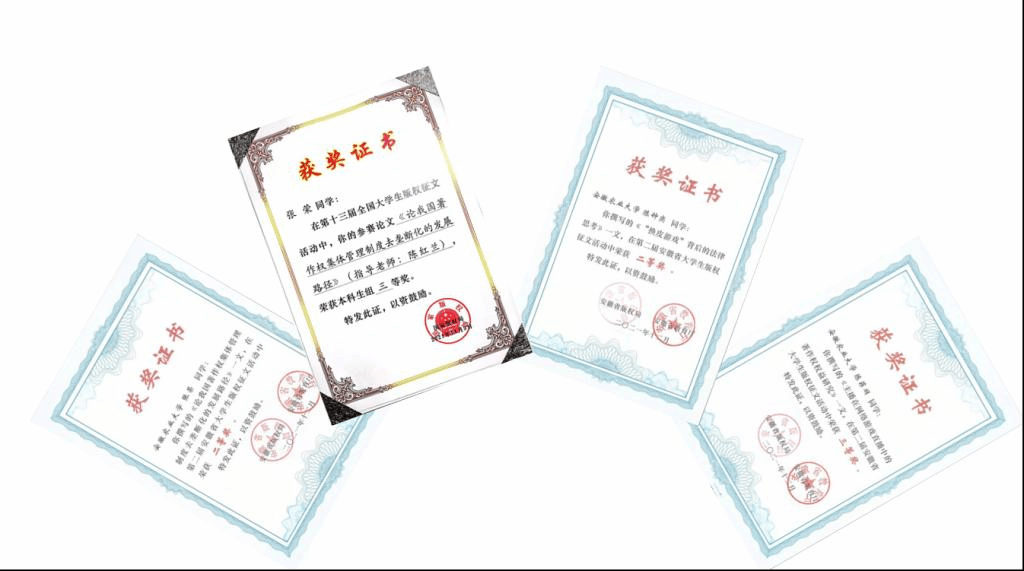 本网讯 安徽省版权局与安徽省教育厅联合主办、安徽大学具体承办的第二届安徽省大学生版权征文活动圆满结束。我院18法学张荣、17法学陈钟奕在此次省赛中喜获二等奖,18法学陈菲羽荣获三等奖。张荣还同时获得第十三届全国大学生版权征文活动的本科生组三等奖的好成绩。