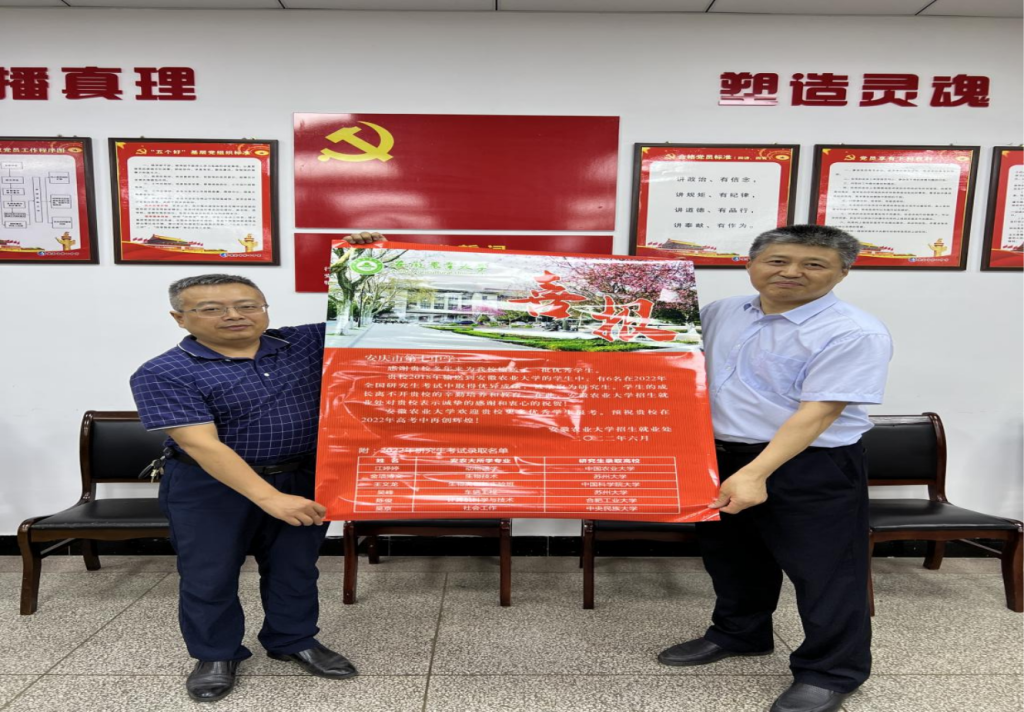 本网讯 为进一步推动我校与省内重点中学的交流与合作,吸收高质量考生,提高我校在省内重点中学的影响力,按照学校招生宣传工作安排,6月27日,人文社会科学学院党委书记陈先玉、李飞老师等一行人走访了我校优质生源基地安庆市第七中学并送去考研喜报,该校李飚校长、谢庆副校长等热情接待了陈先玉一行。