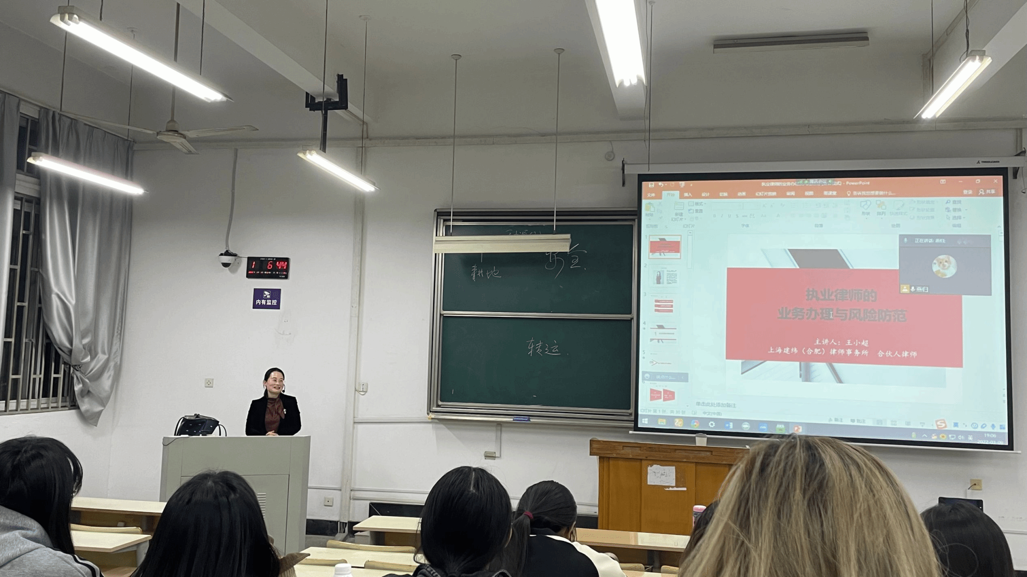 本网讯 3月9日晚,人文社会科学学院邀请上海建纬(合肥)律师事务所合伙人王小超律师在博学楼332室作了题为“执业律师的业务办理与风险防范”的专题讲座。