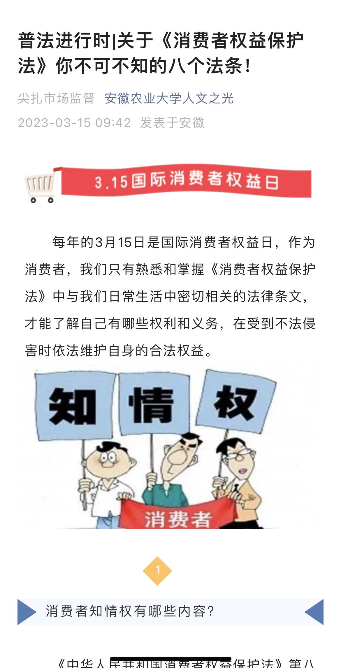 为提高大学生理性消费意识,切实保障师生合法权益,营造安全和谐的校园消费环境,在2023年“3·15国际消费者权益日”来临之际,学院开展了形式多样、内容丰富的3·15消费者权益日主题活动。